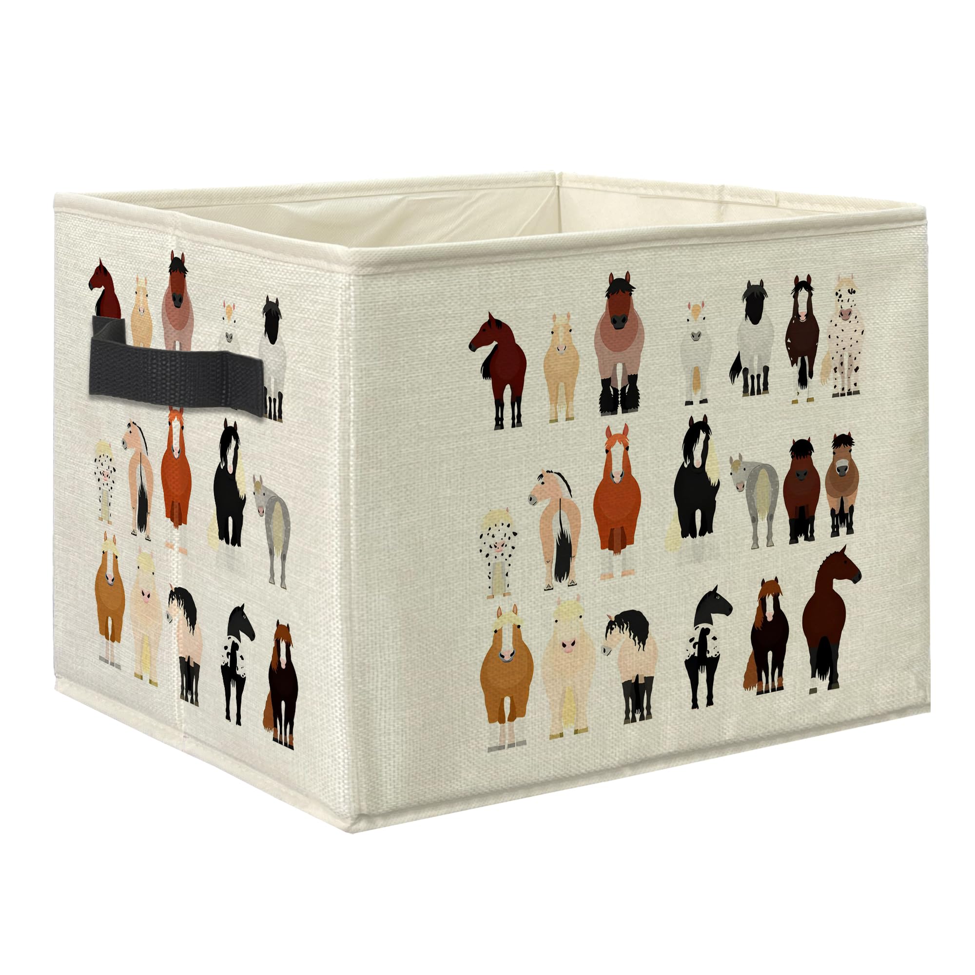 Knibeo Funny Horse Breeds Fabric Storage Bins for Shelves Closet, Horse Gifts for Women, Farmhouse Gifts Collapsible Cube Baskets Organizer for