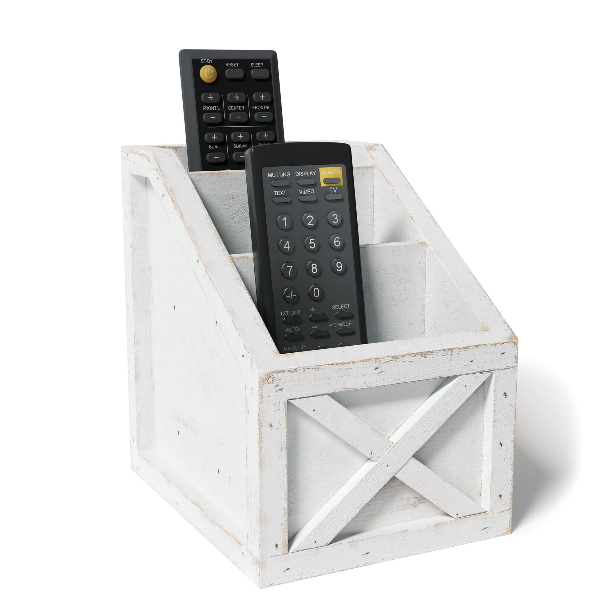 Barnyard Designs Rustic Vintage Wooden Desk Organizer Remotes Caddy Tabletop Desktop Office Supplies Desk Accessories Holder, 6.75" x 6.5โ (White/