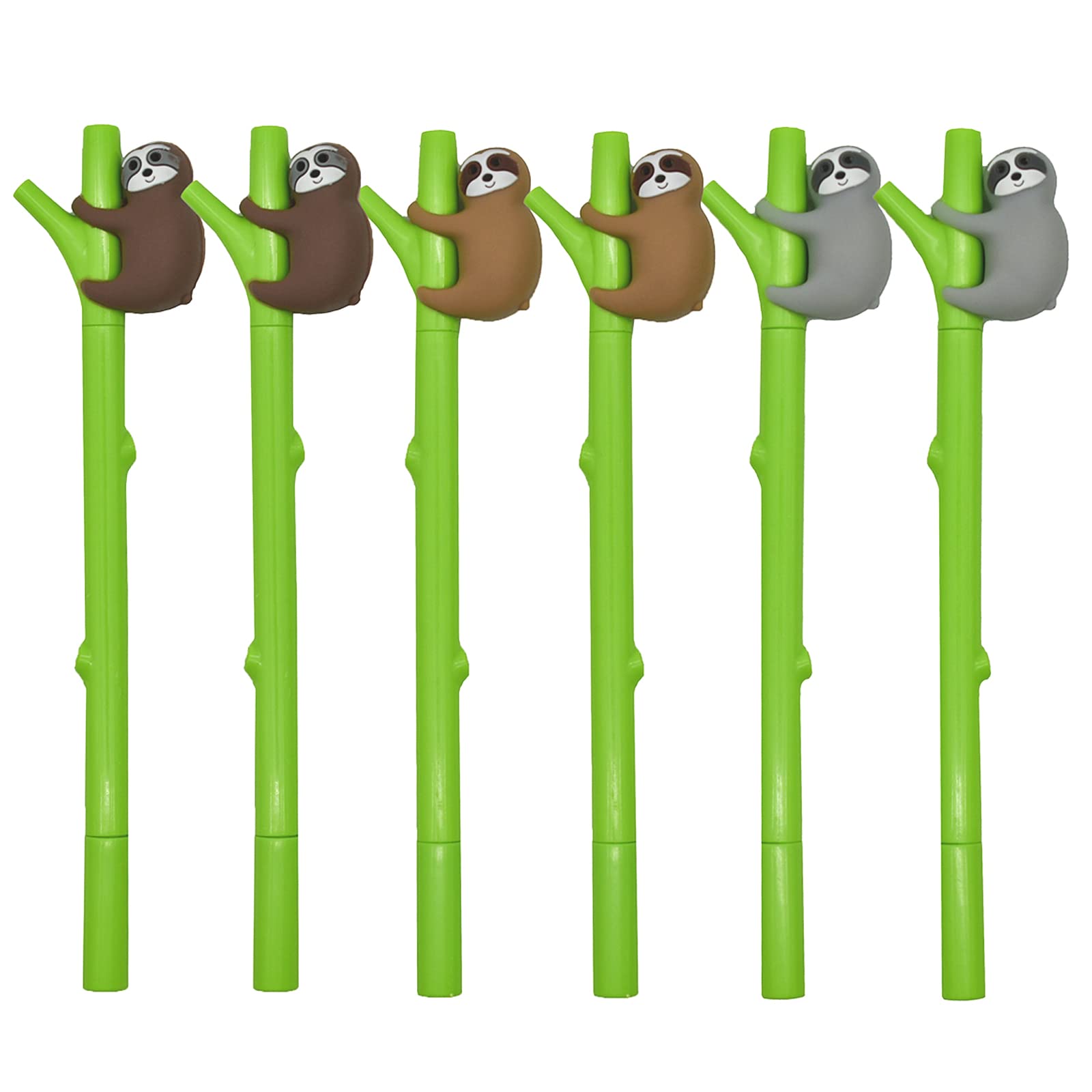 Adorable Design:Fun Sloth Pens Cute,Naughty Sloth Is Climbing The Green Tree,They Just Like A Lovely Boy Play Happily,And The Materials Of The Sloth Is Silicone,Can be Taken Off Put On Other Pens If Need Sometimes, It Is Very Popular Packing Details:Novelty Animal Pen Is Packed Of 9 Pieces,There Are