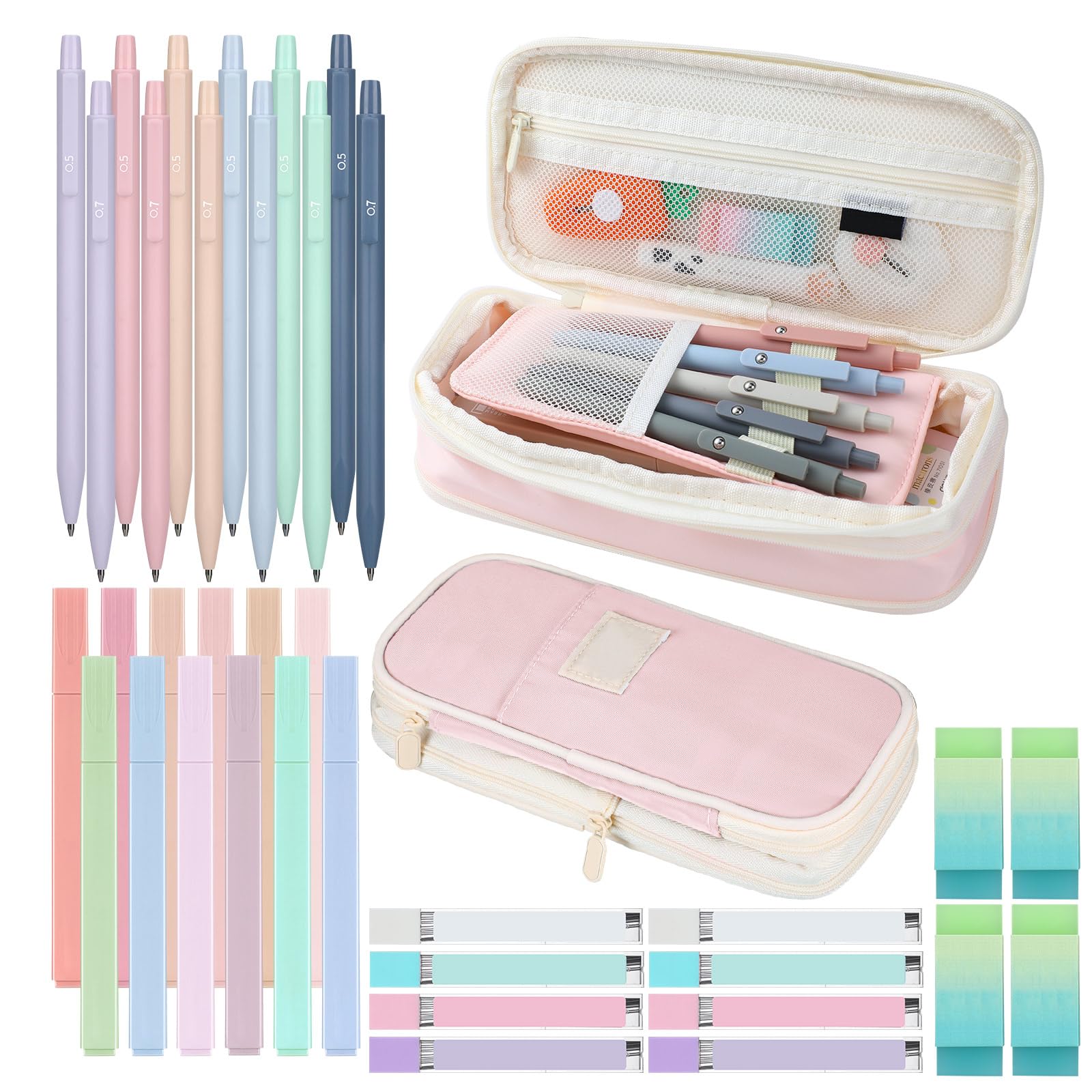 Cute School Supplies: you will receive 1 piece of cute pencil case, 12 pieces of pastel mechanical pencils, 4 pieces of erasers, 8 tubes of pencil refills, 12 pieces of cute highlighters, a nice combination set to satisfy your use and replacement needs Large Capacity Pencil Case: the pencil case for