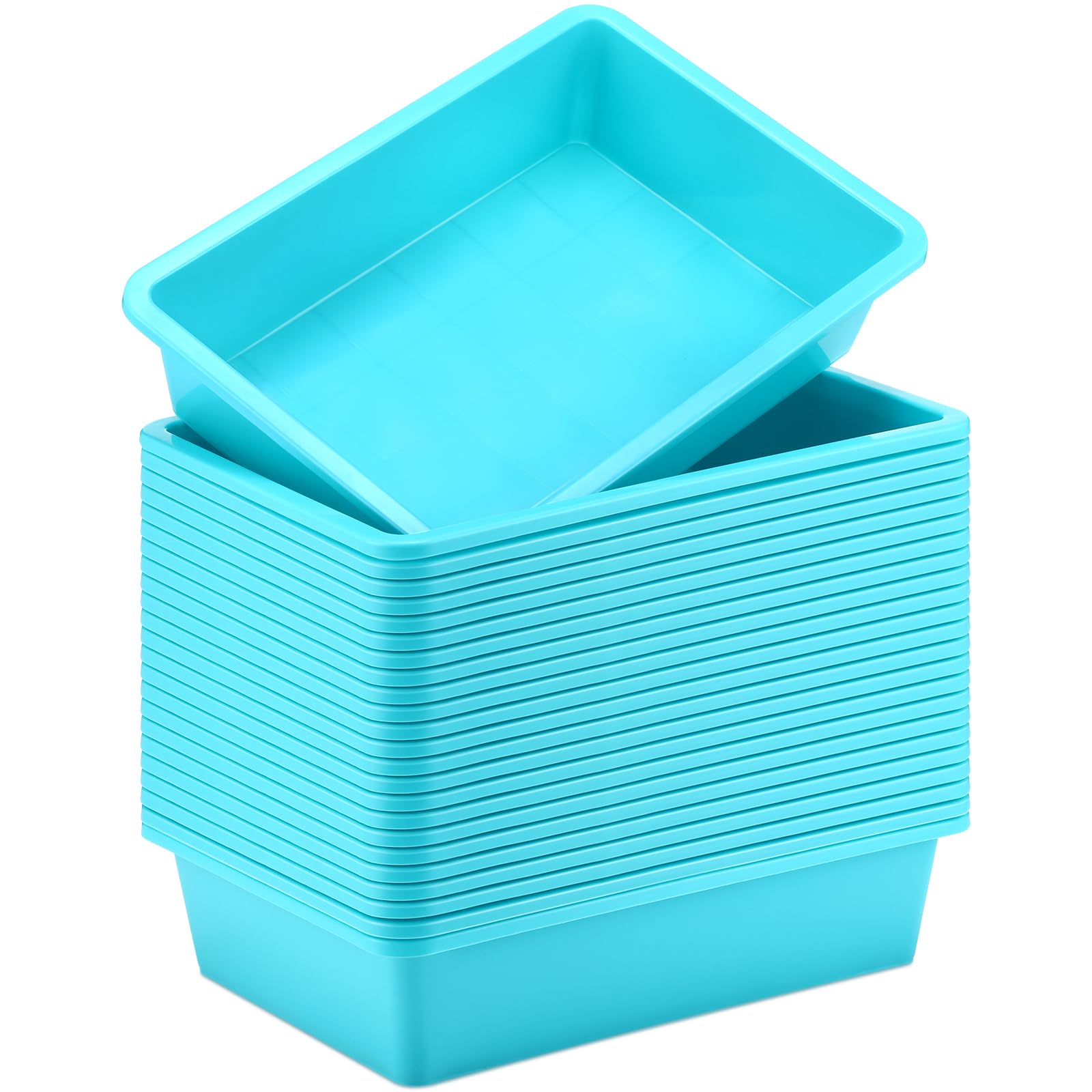 Meet Your Requirements: the package contains 24 pieces of plastic classroom trays in cyan; They can be applied at school home art and crafts, DIY projects, painting, beads, organizing supply Conspicuous Design: when you are not using these storage trays bulk, they can be nested together for compact