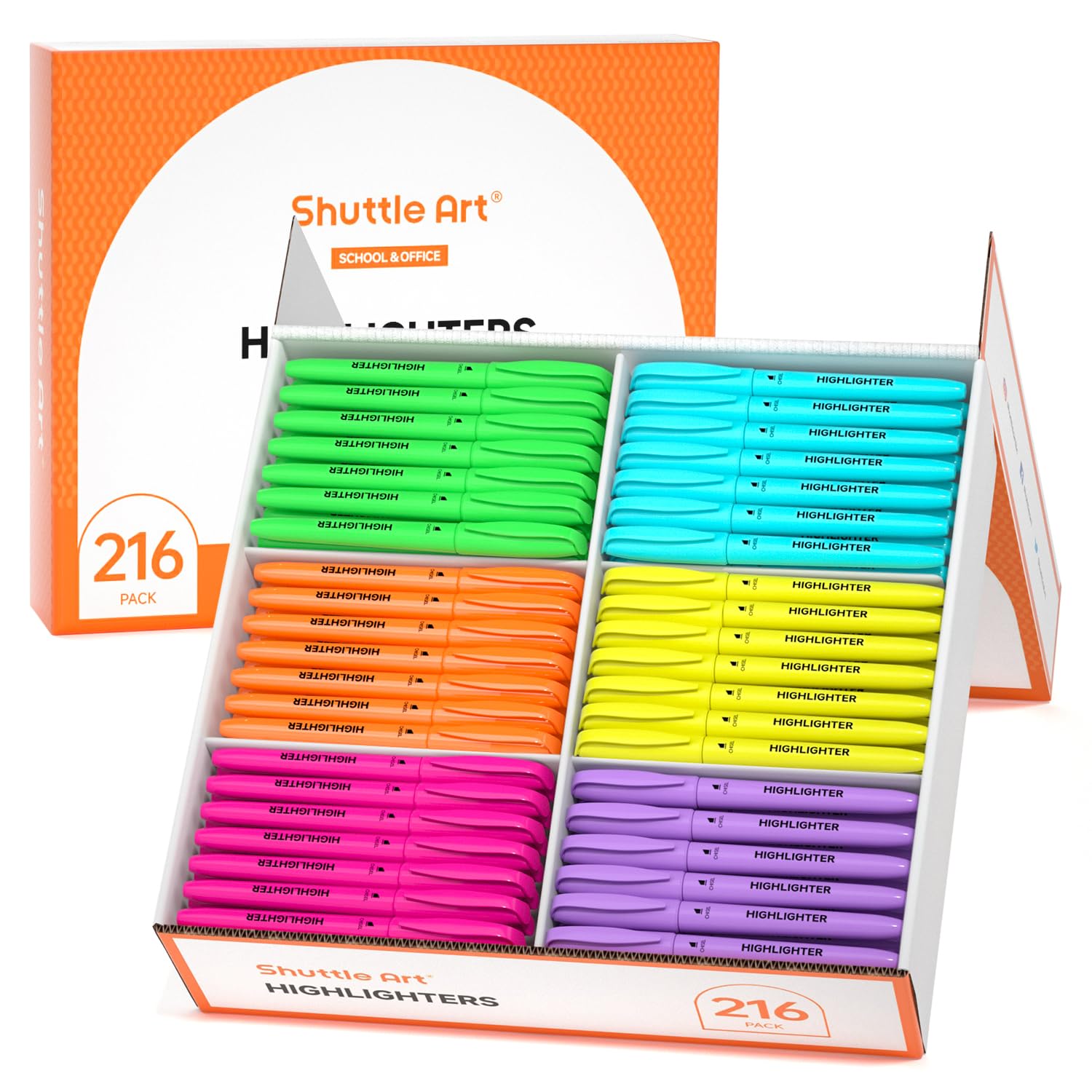 Shuttle Art 216 Pack Highlighters, Highlighters Assorted Colors Set, 6 Bright Colors Chisel Tip Dry-Quickly Non-Toxic Highlighter Markers Bulk for