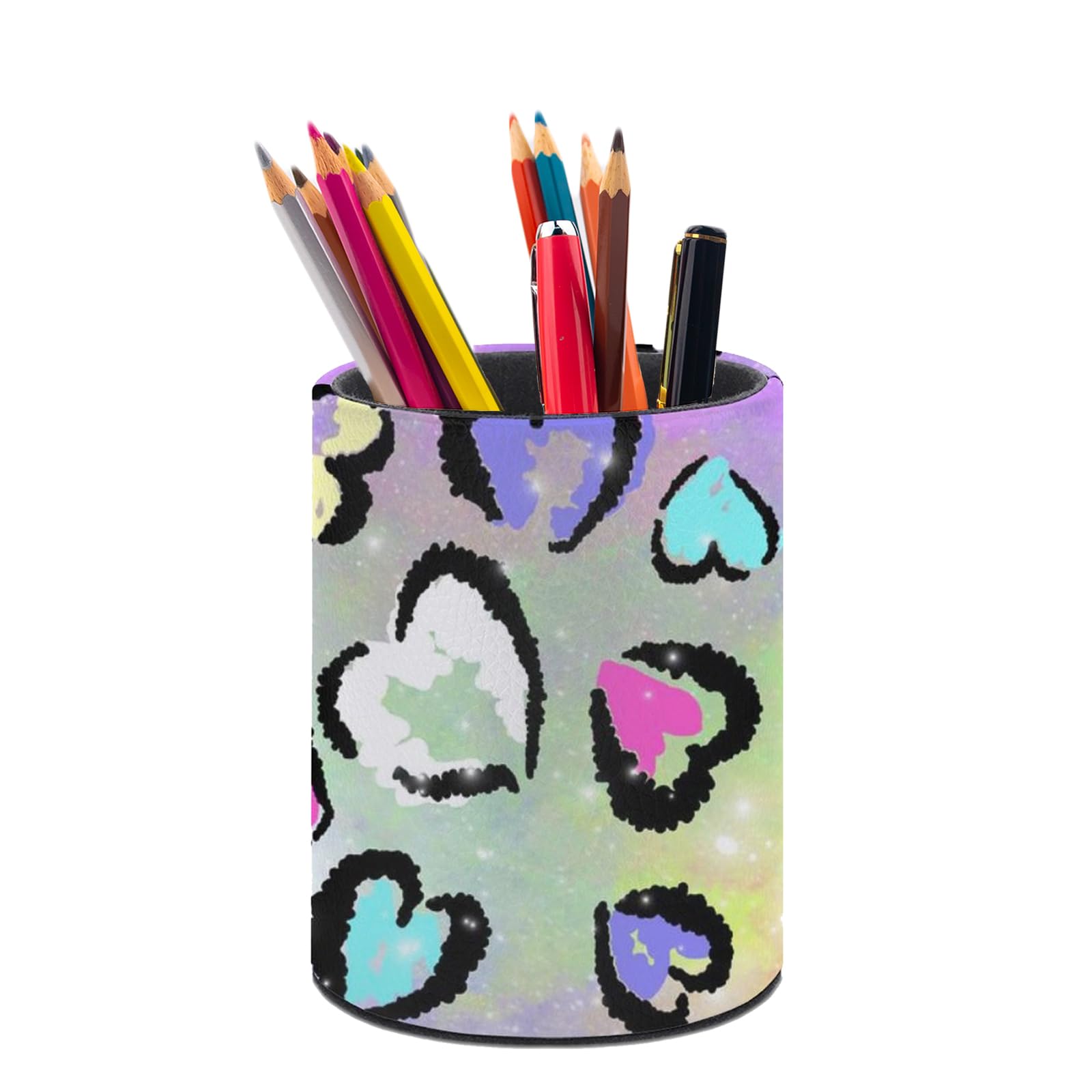 XUWU Leopard Heart Print Pen Holder Pencil Organizer Cute Pencil Cup Desk Decor Makeup Brush Holder PU Multifunctional Office Suppliesfor Home