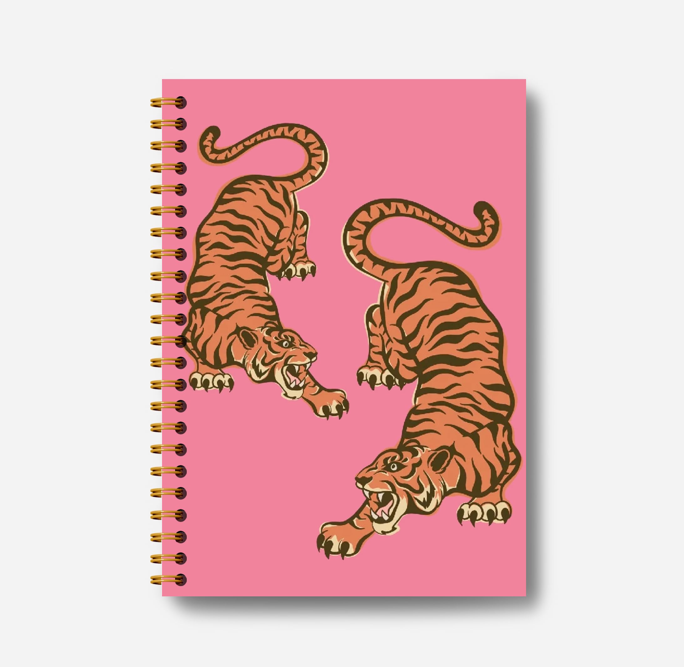 Guymn Trendy Preppy Hot Pink Tiger Notebook Journal - Pink Aesthetic Notebooks, Pink Composition Notebook, Pink Office Supplies, Pink Desk Accessories
