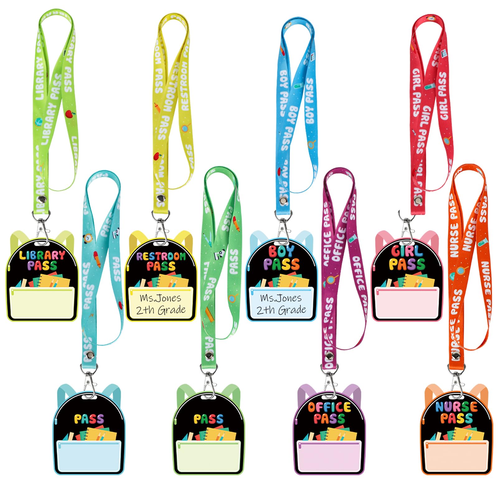 Product Includes: 8 sets of school passes with lanyards, including library, hall, office, nurse, lounge, bathroom, boy and girl passes, and 2 DIY passes. Comes with a pen to write classroom and teacher names in the margins for easy management. Suitable Size: the size of the classroom pass is about 3