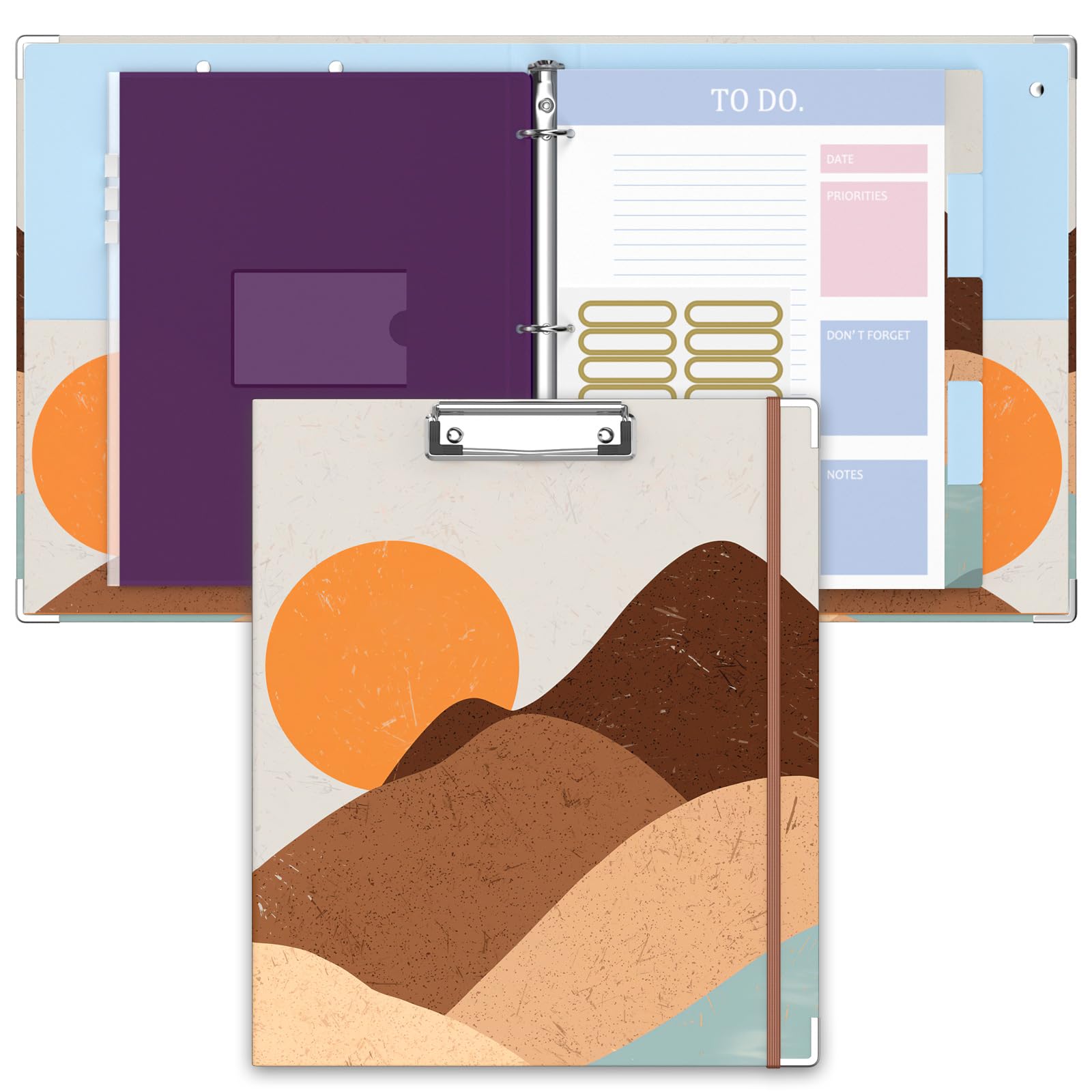 ZAXMEY 3 Ring Binder, 1 Inches Round Ring Binder with Clipboard, Dividers Tabs, PVC Zipper Bag Sleeves & to Do List Planners for Women, Men, School,