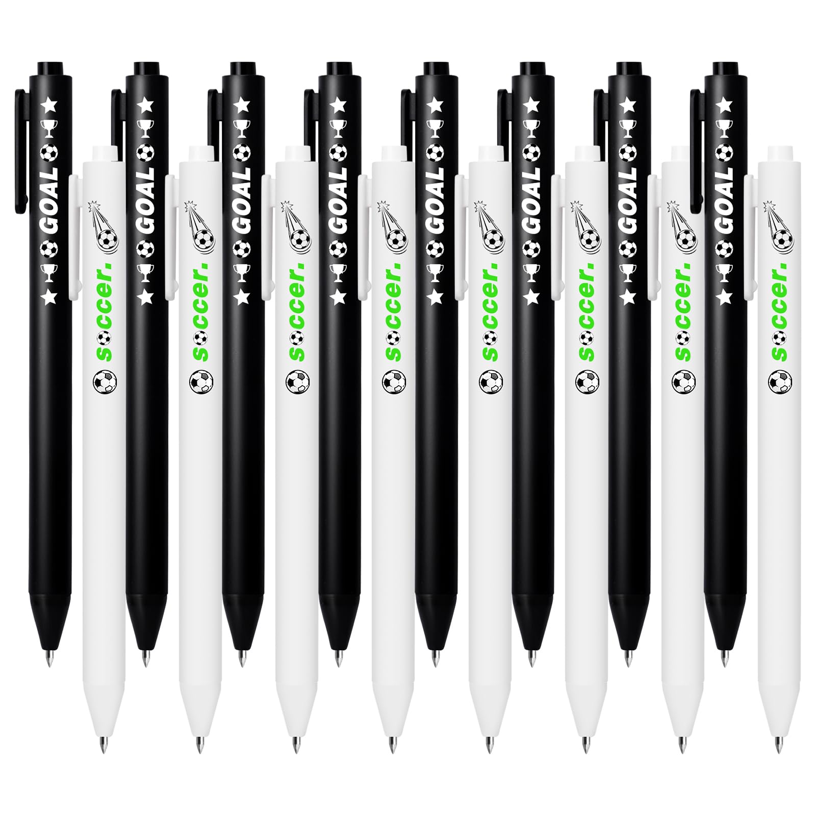 Soccer Gel Pens Set: You will receive 36 pcs of black pressed retractable pens with black and white casing, 18 pcs with black casing and 18 pcs with white casing, respectively printed with GOAL and SOCCER patterns, which are smooth writing, not easy to smudge, and easy to use. Super Smooth Writing:
