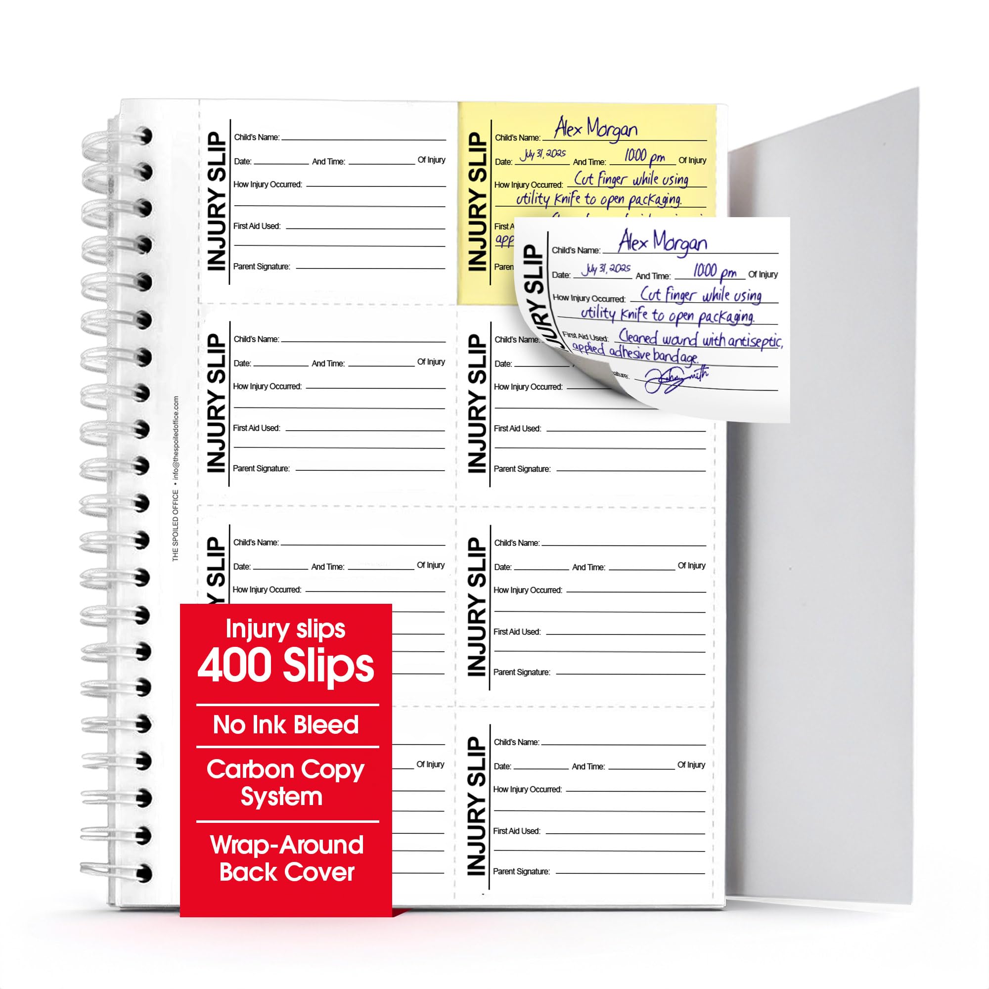 The Spoiled Office Injury Slip Book with Carbonless Duplicates 400 Pcs - 2 3/4"x3 3/4"- Easy Tracking Log Book for School Carbon Copy, School Supplies