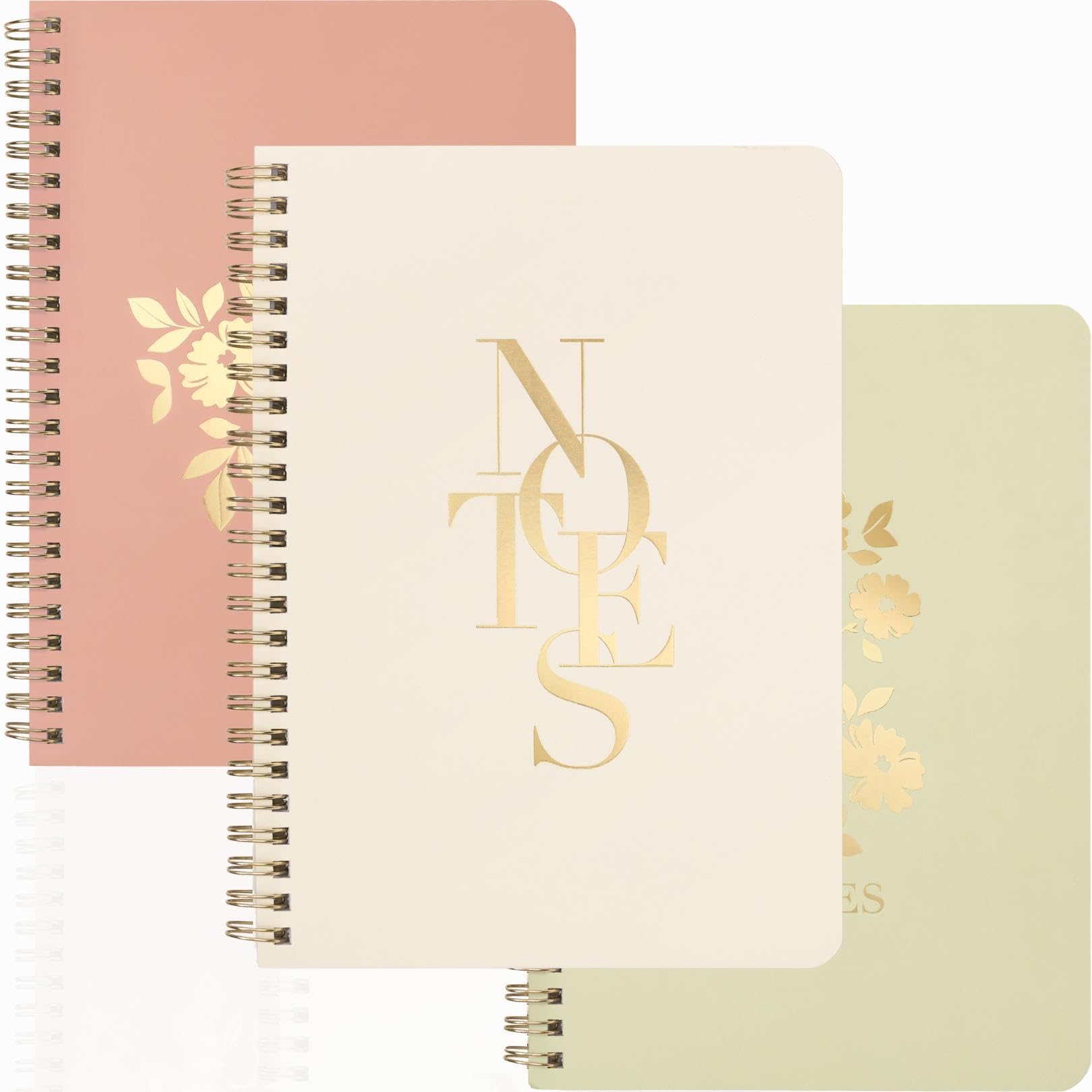 Paperell Journal for Women Spiral Notebook, Set of 3 Gold Foil Embossed Cute Notebooks for Work, School or Study Supplies - Journaling Notebooks -