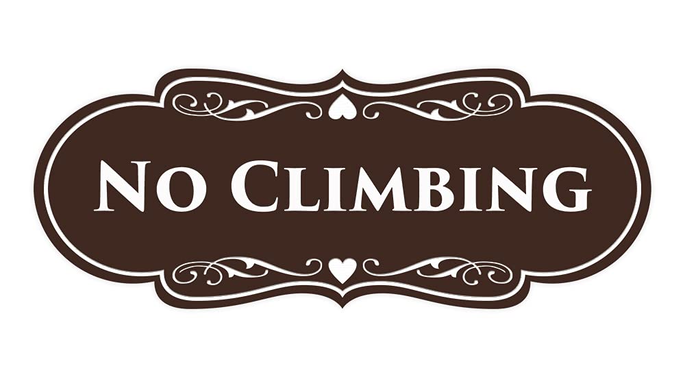 Beautifully designed Signs ByLITA Designer No Climbing Sign for your home, office, business or school. Dimensions: 2"H X 5" W Premium Lasered Engraved Plastic Sign includes, optional, strong foam double sided adhesive tape for mounting on most surfaces. Perfect sign for your home, office, business o