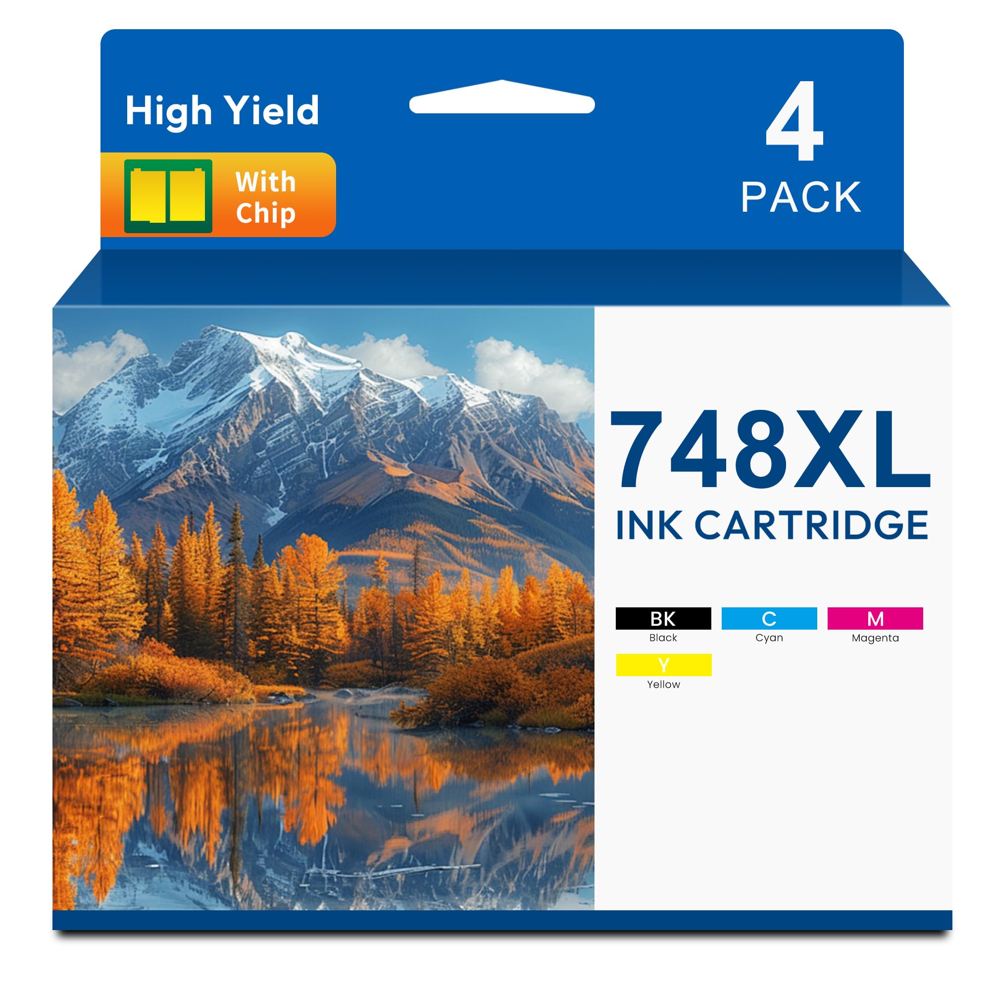Remanufactured 748 Ink Cartridge - T748 ink cartridge with 4 pack (T748XL120-Black, T748XL220-Cyan, T748XL320-Magenta, T748XL420-Yellow), upgraded materials and chip bring the perfect printing experience High Capacity Yield Pages - 748XL ink cartridge up to 5,500 pages for black, up to 4,000 pages f