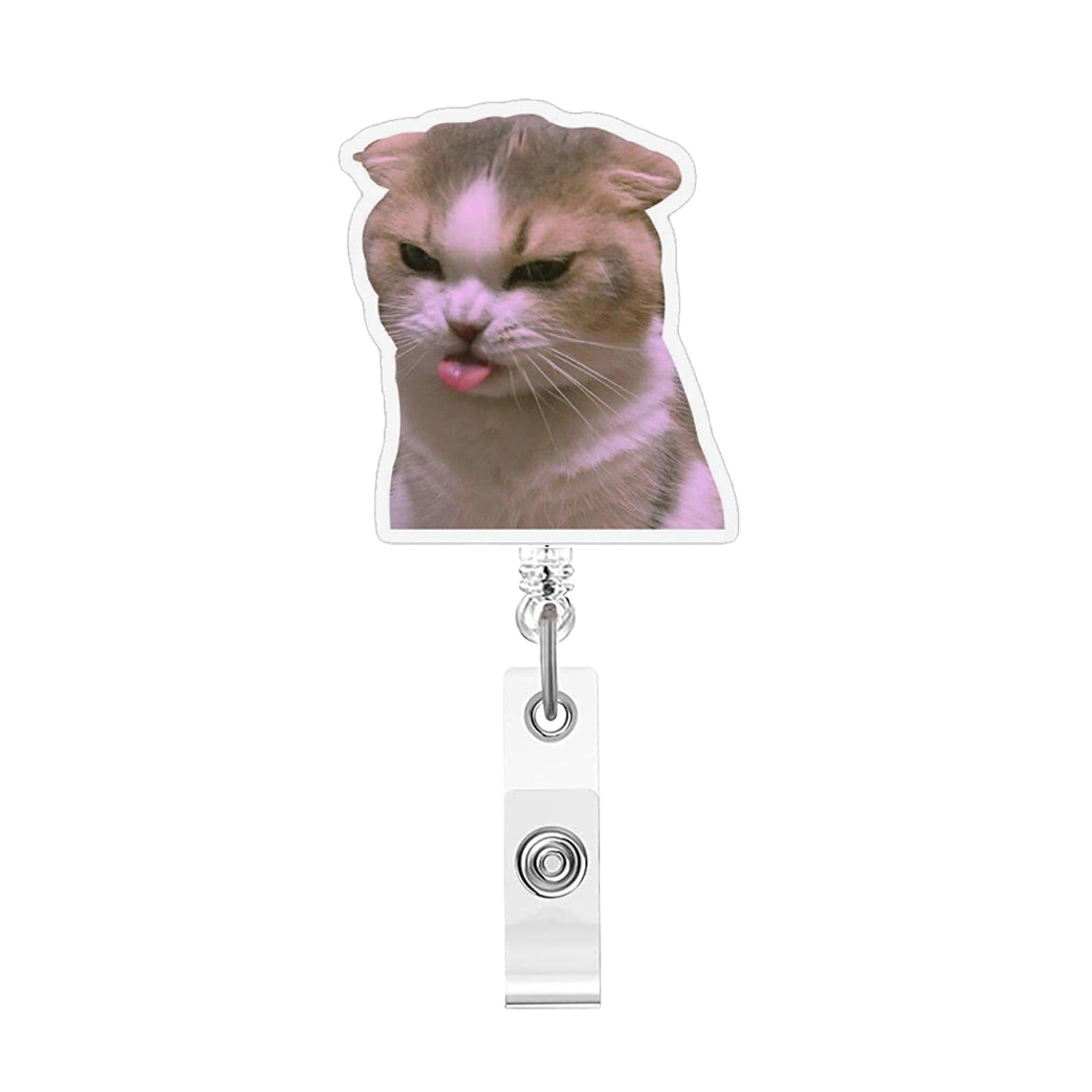 Cat Acrylic Badge Reel Cute Kitten ID Card Clip Retractable Funny Badge Holder for Nurse Insignia Reel with Alligator Clip for Office Hospital Worker