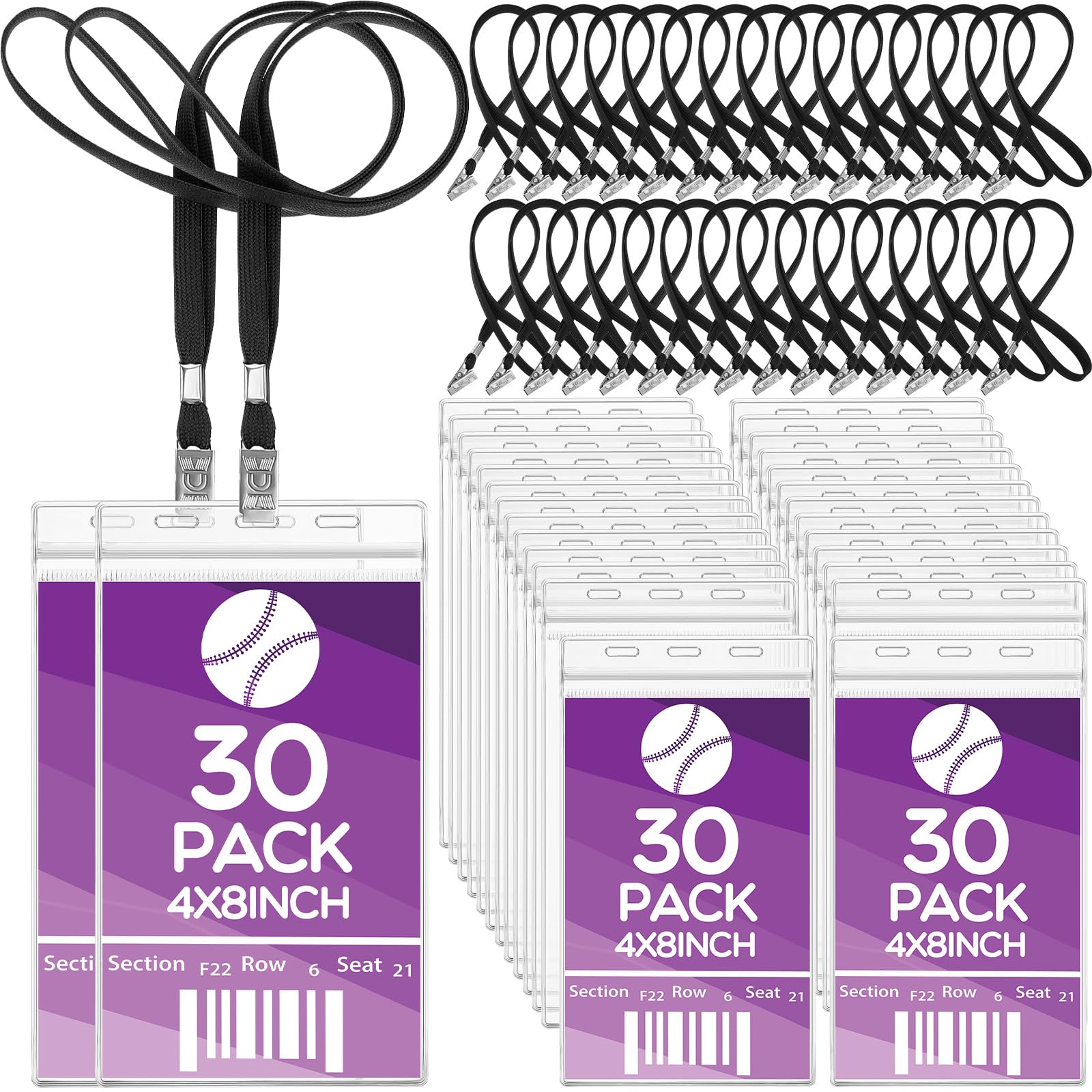 Patelai 30 Pcs Extra Large 4 x 8 Inch Badge Holders with Lanyard Bulk PVC Waterproof Card Holder Credential ID Protector Sleeves 3 Lanyard Slots at
