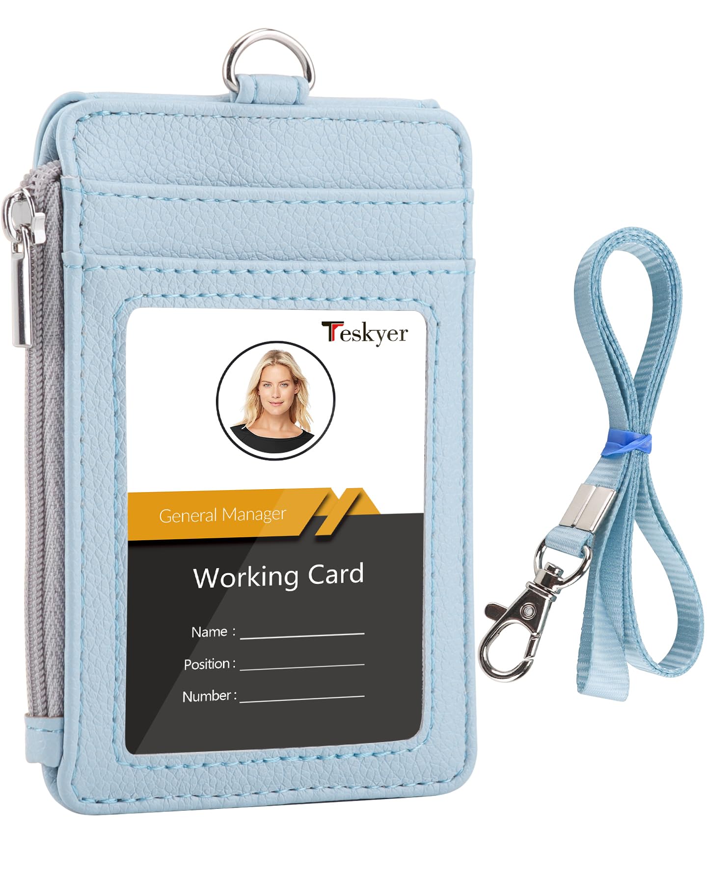 Product Structure: This Teskyer badge holder has 4 card slots(including a clear ID window) a side zip pocket and a durable nylon neck lanyard. A perfect leather id badge holder to display your work badge while carrying serval credit cards and a little cash, coins or keys Multipurpose ID Card Holder: