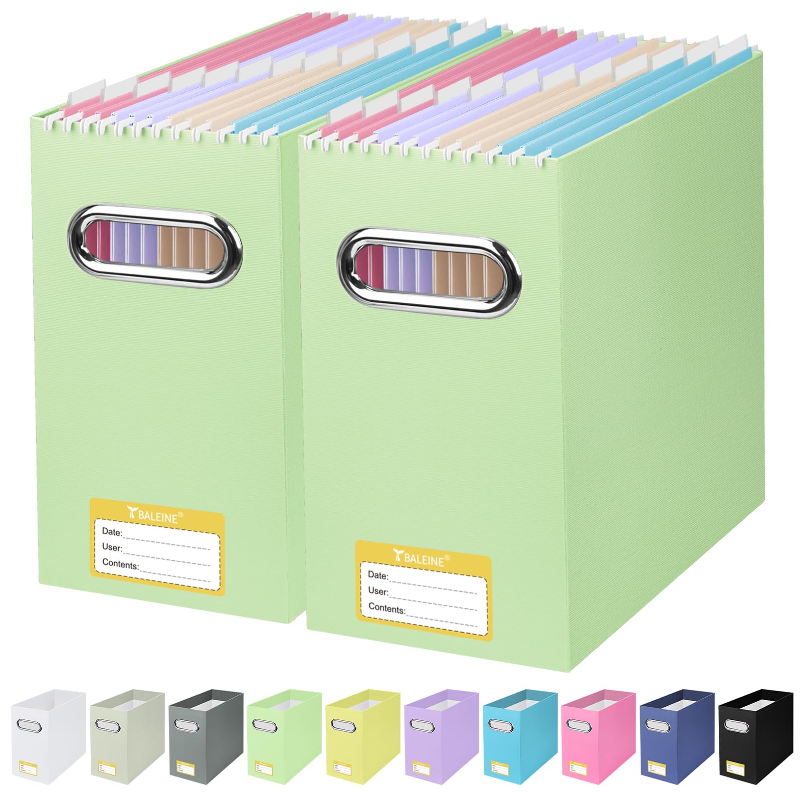 BALEINE File Organizer Box, Cardboard File Folder Organizer with Handle for Letter Size, Portable Collapsible Hanging Filing Box for Home Office