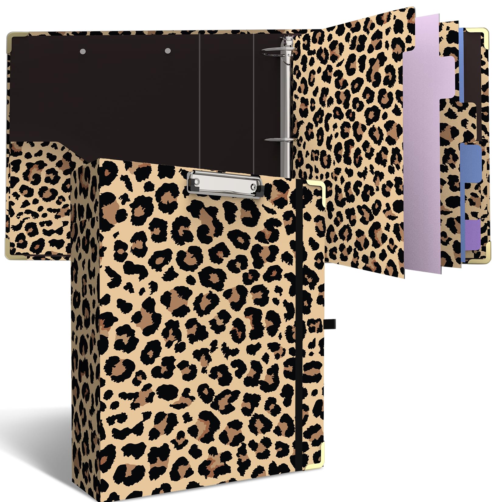 3 Ring Binder 2 Inch Round Ring Binder with 6 Tab Dividers,2 Interior Pockets,Cute Binder Clipboard with Storage, for School Office, Portfolio(Cheetah