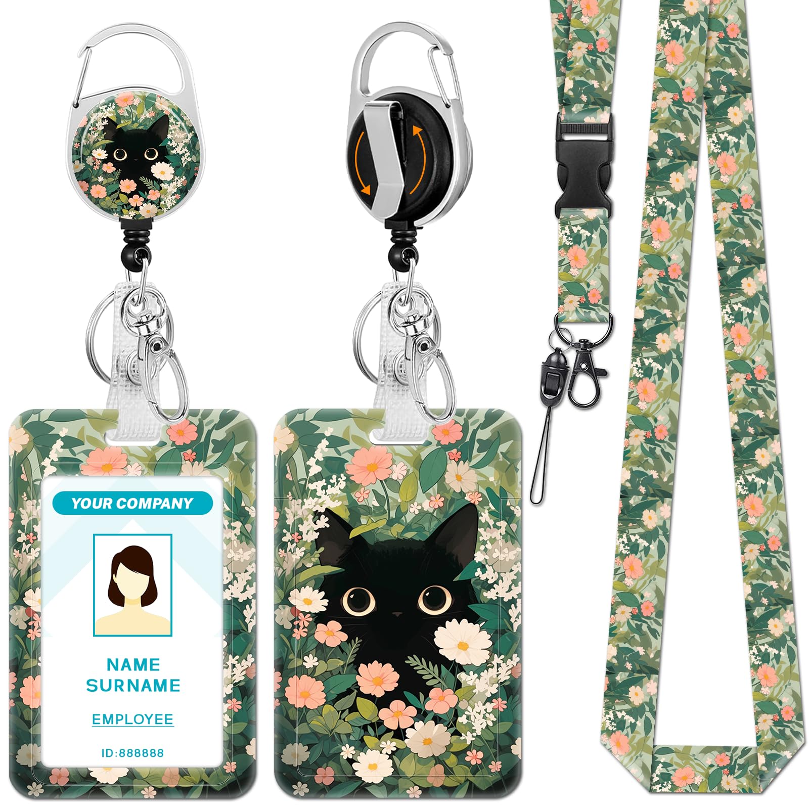 【Unique Design】This black cat flower floral lanyard with id holder features unique arts: black cat hiding in beautiful flowers. The lanyard with id badge holder is available in a range of vibrant colors and boasts a distinctive design, ensuring that it not only catches the eye but also adds a to