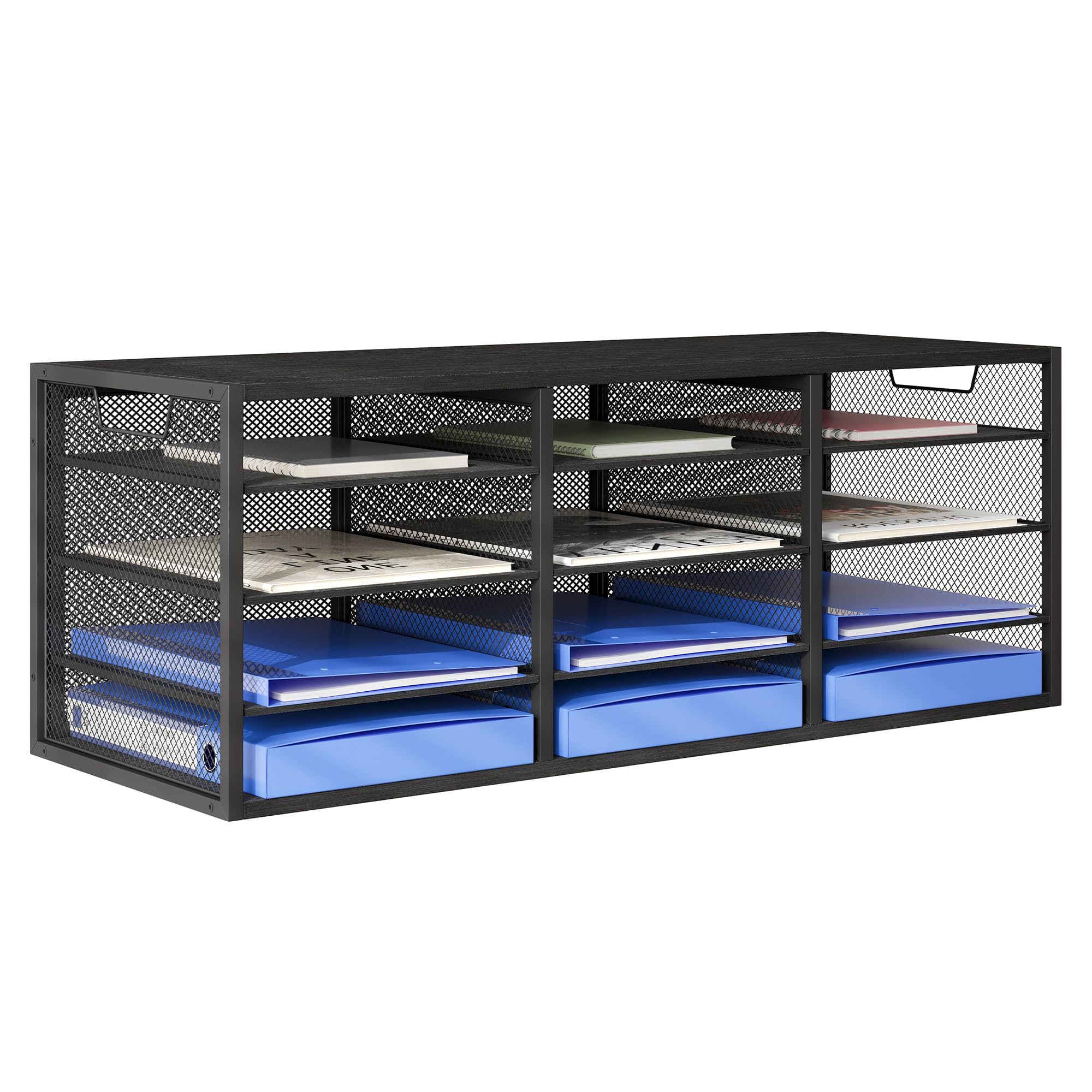 Efficient Storage: This office mail organizer features 12 spacious compartments, each designed to hold A4/letter-sized documents, books, magazines, mail, and bills. The smart layout keeps your items neatly separated and easy to access. Durable & Convenient: Built with a sturdy iron frame and high-qu