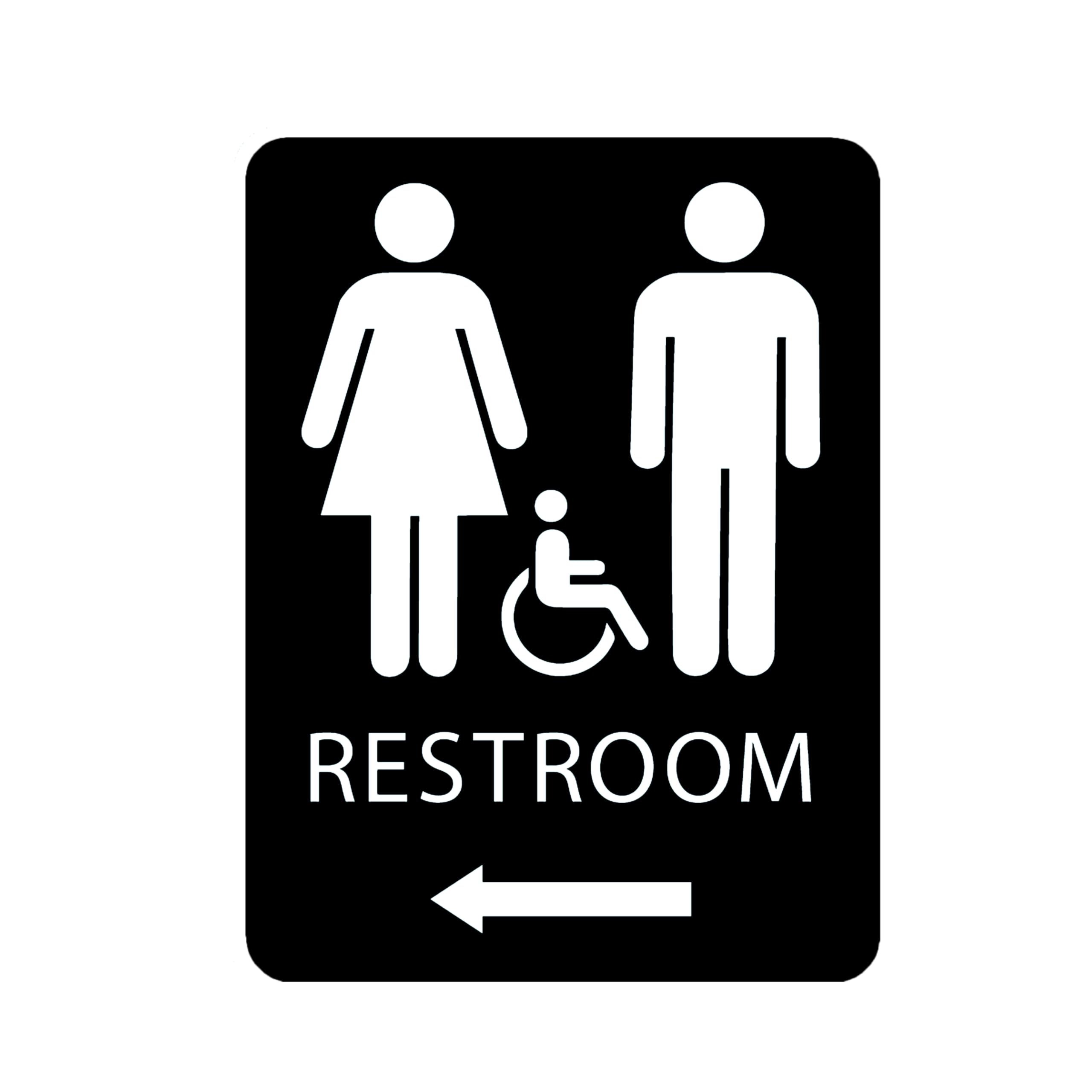 QUALITY UNISEX RESTROOM SIGN WITH LEFT ARROW - Add these high visibility bathroom signs so customers can easily navigate your facility. No cheap molded signs here. EASY TO READ - Our wayfinding restroom sign make it easy for folks to find those much needed bathrooms. READY TO INSTALL - All our direc