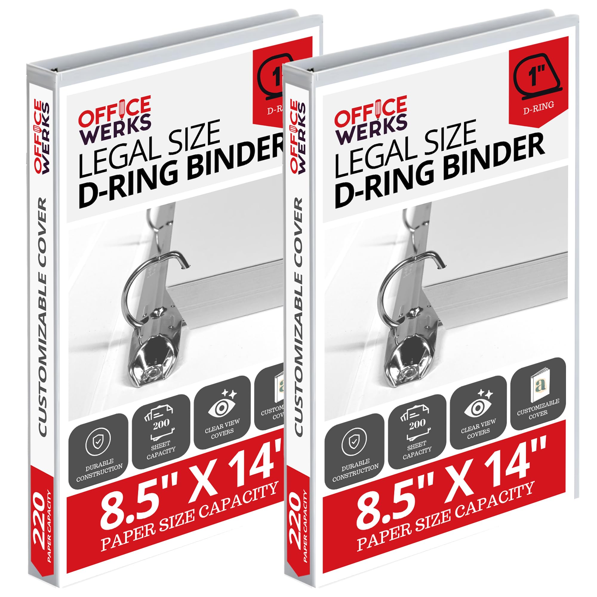 Performore - Office Werks Heavy Duty 2-Pack Legal Size View Binder - 14" x 8.5", White, 1 Inch D-Ring, Back Mount Binder