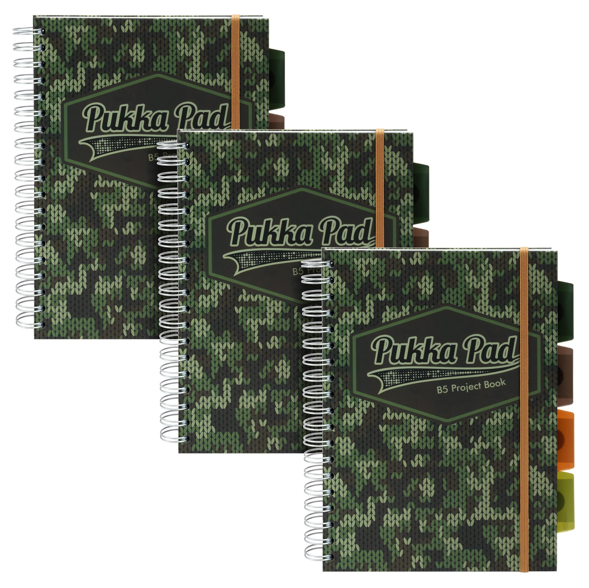 Fashionable Camo Knit Notepads: The Pukka Pad Notebooks come in sets of three with green camo-knit stylecoversso you can stay stylish while you organize your school subjects Notebook Reimagined: Take your notebook to the next level with the Pukka Pad Project Books, a revolutionary take on the classi