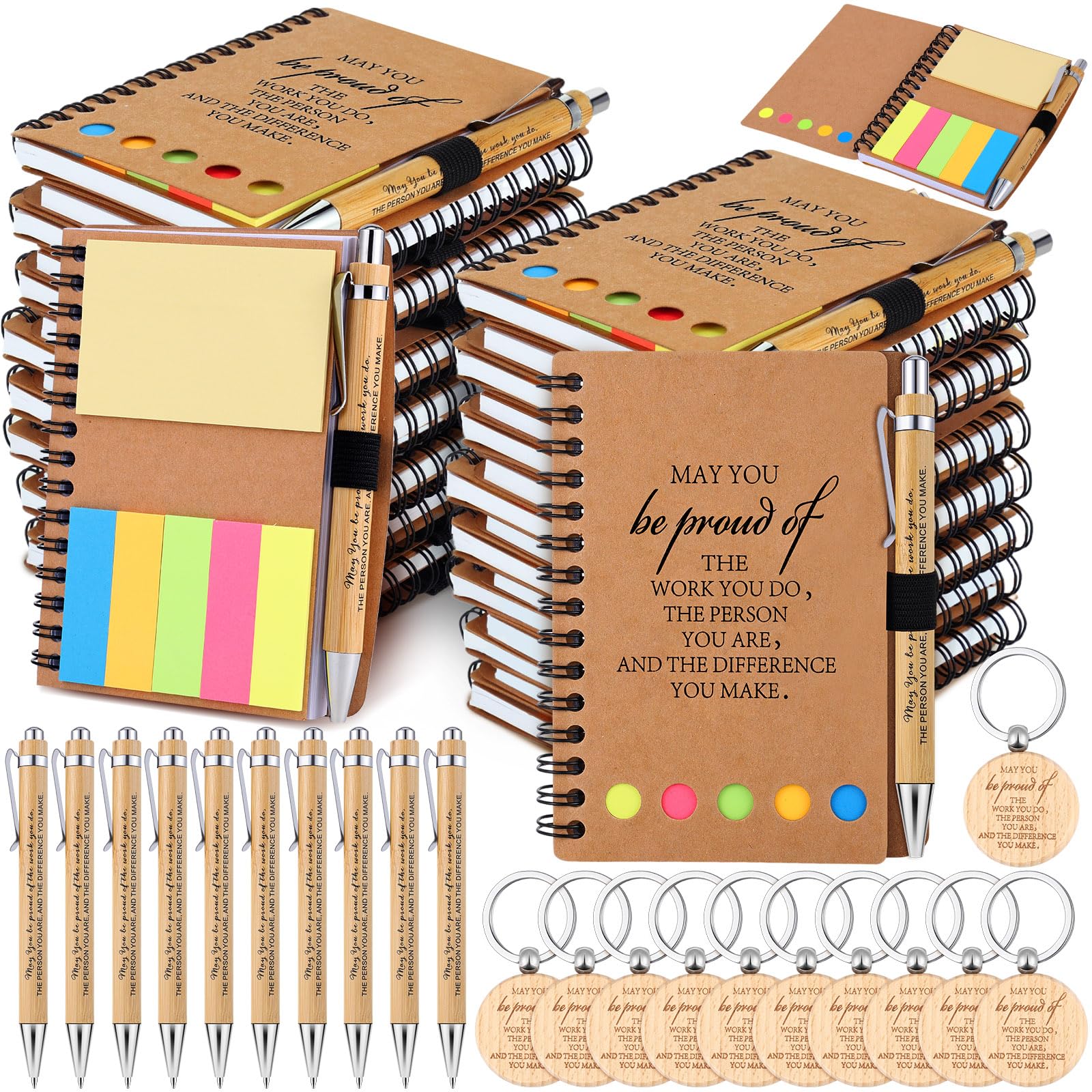 Package Contains: you will get 20 pcs employee appreciation spiral notebooks, 20 pcs motivational wooden keychains and 20 pcs inspirational ballpoint pens, the sufficient quantity can meet your use and replacement needs in daily life Size Details: the encouragement notebooks is 4.09 x 5.31 inches/ 1