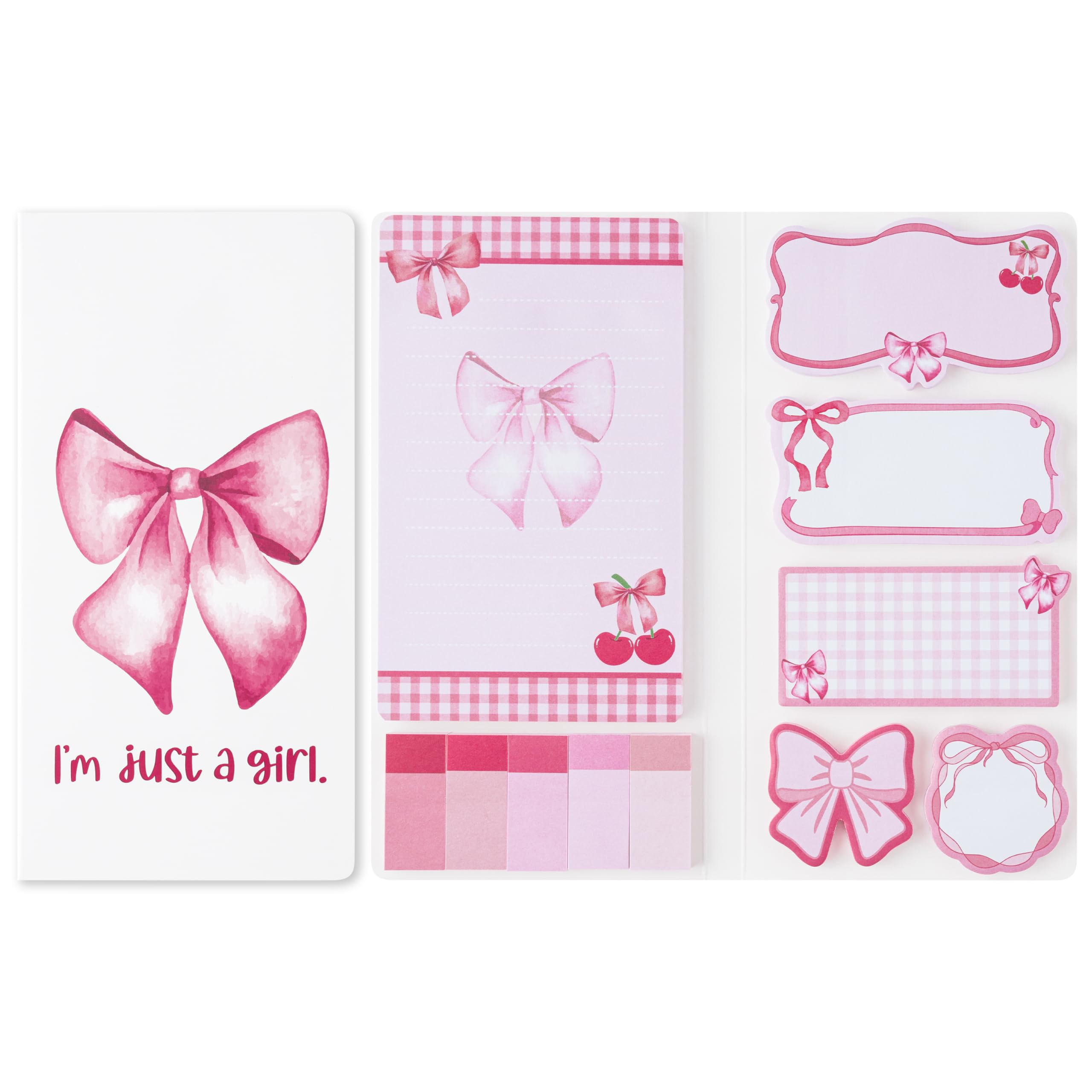 Xqumoi Coquette Pink Bow Sticky Notes Set - I’m Just A Girl Self-Stick Note Pads Bowknot Notepads Writing Memo Pad Page Marker Bookmarker Preppy Girly