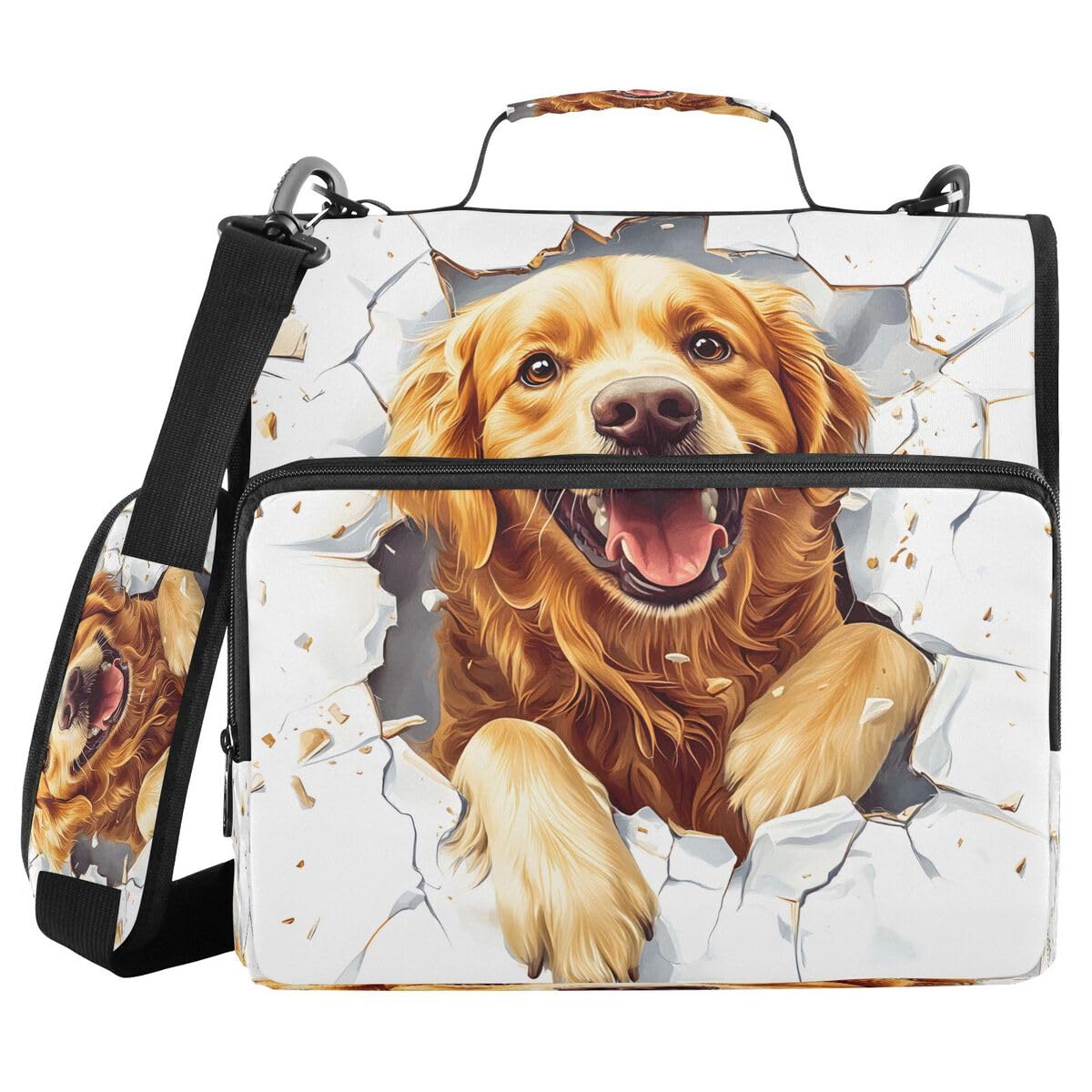 ALAZA Golden Retriever Puppy Dog White Zipper Binder Bag 3 Ring Binder Large Capacity 1.5 Inch Multi-Pockets Organizer with Shoulder Strap and Handle
