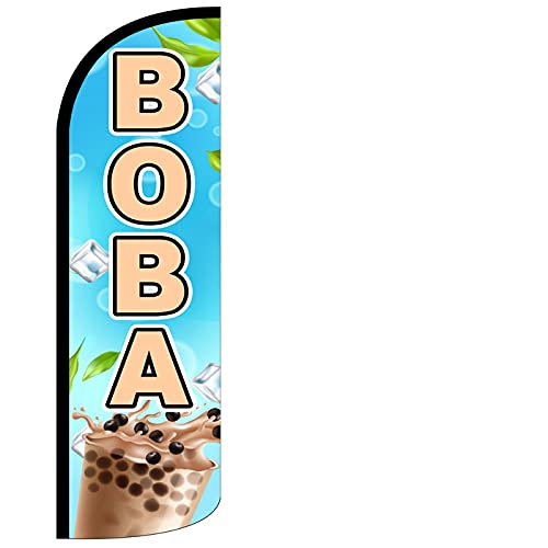 4 Less Co BOBA - Windless Swooper Flag Feather Drink Banner Sign 3x11.5 ft Tall (Flag Only) bq