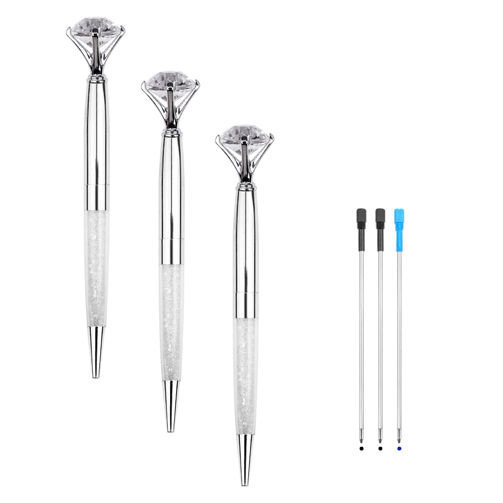YOUMI Big Diamond pens, Black Ink Ballpoint pen Bling Crystal Rhinestone Jewel Gem Metal Pens with Diamond Top Writing School Office Supplies Wedding