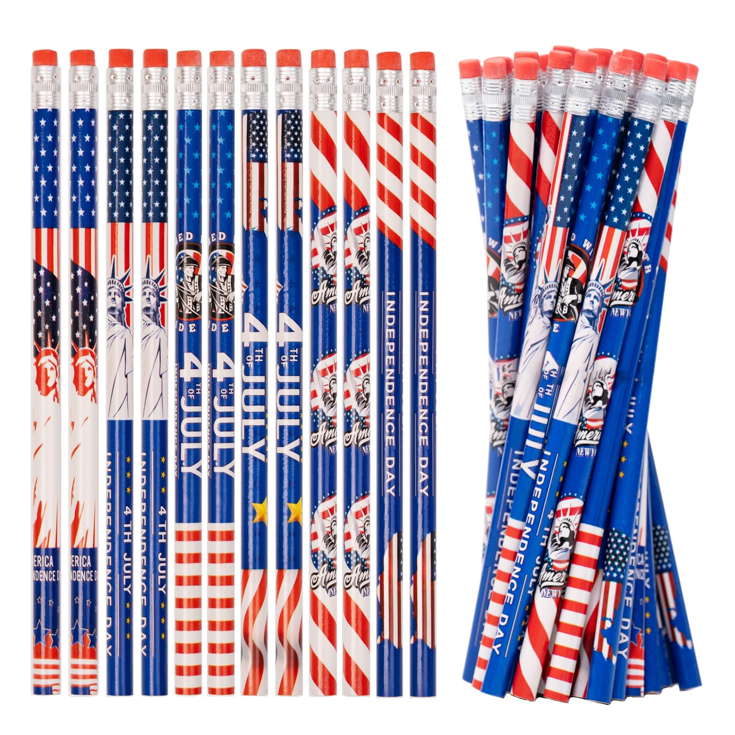 Package Includes: 48 Pcs Independence Day pencils bulk in 6 different styles, each style has 8 pieces of pencils, sufficient enough for your daily use and patriotic party, also you can share with your friends to enjoy the fun. Patriotic Design: These patriotic pencils are designed with classic Patri