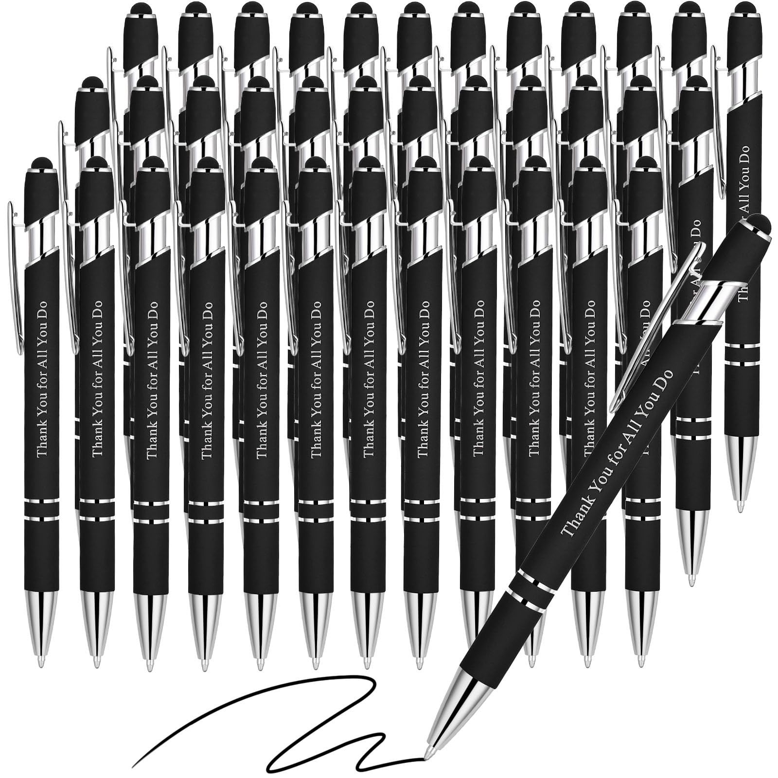Seajan 36 Pcs Employee Appreciation Gift Pens - Black Ballpoint Pens with Touch Screen Stylus - Thank You Quotes - Metal Body - Fine Point - Unisex -