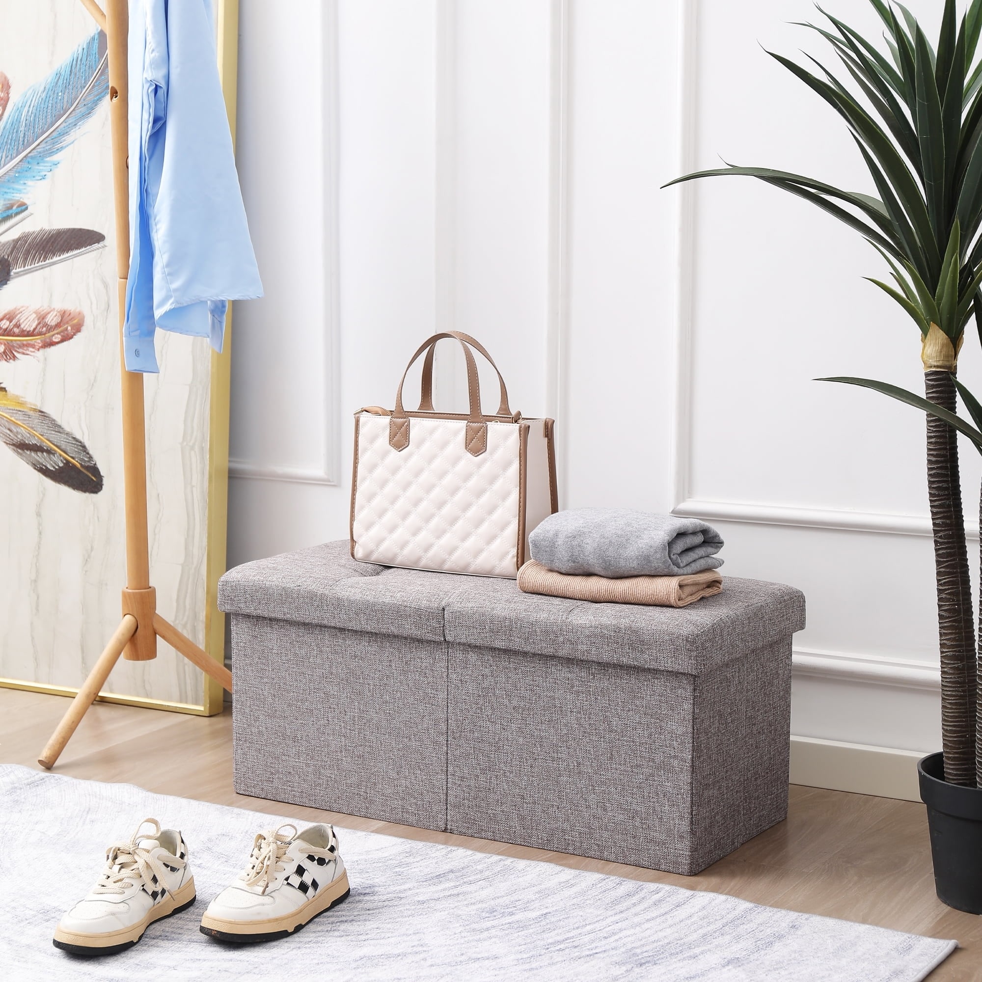 Product Features MULTIFUNCTIONAL: The Bench has large storage compartment. Place this storage chest in the bedroom as a bed end bench, in front of the sofa in the living room as a footrest, or in the hallway as a shoes bench.