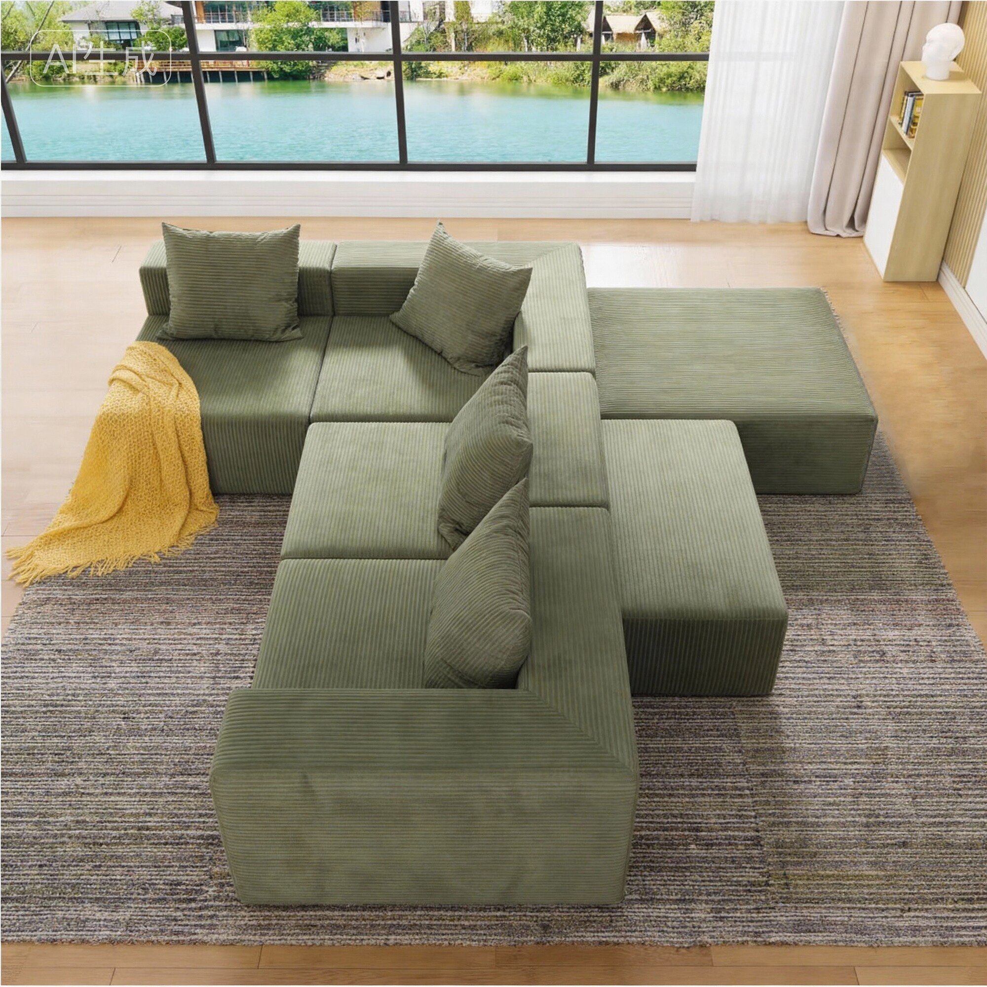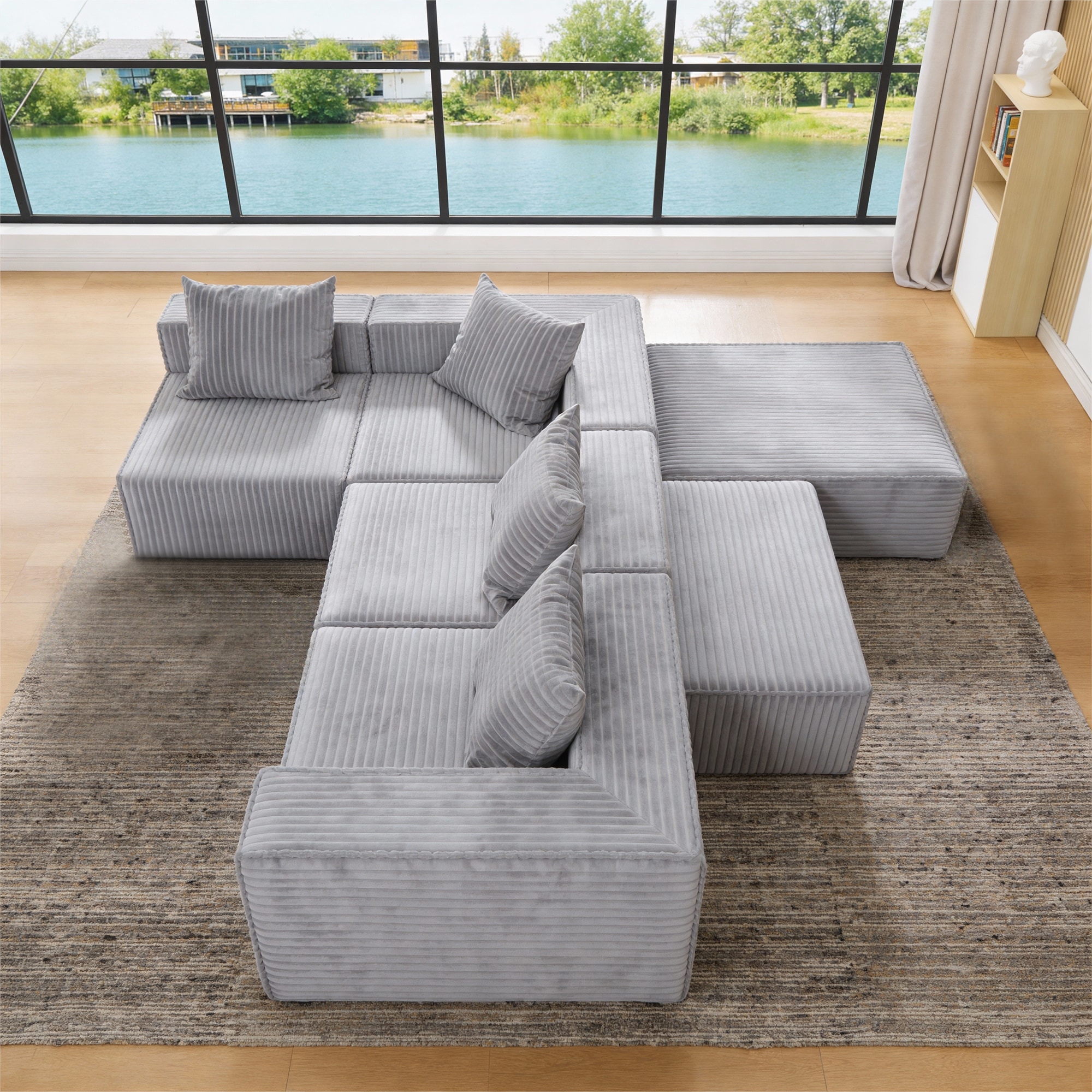 4-Seat Modular Sofa Sectional with Oversized Chaise & Ottomans - Cloud Couch in Soft Corduroy Fabric for Small Spaces, Living Ro