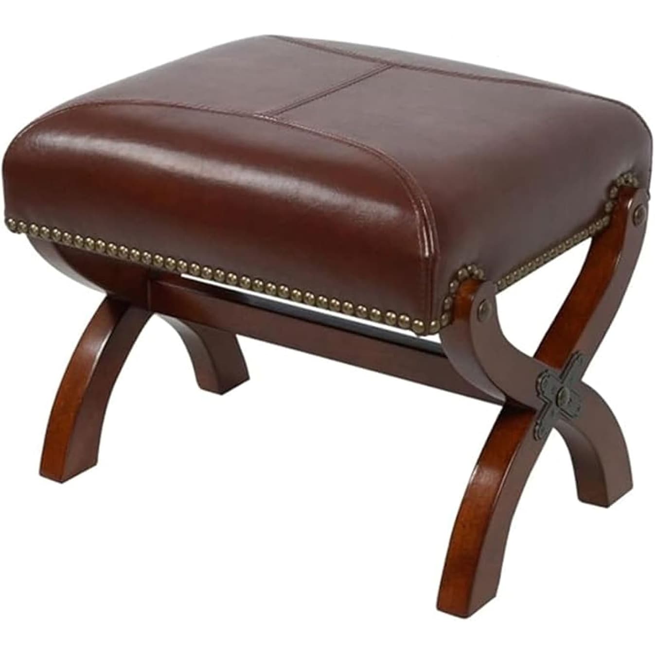 Leather Footrest Wood Ottoman, Rustic Foot Stool, Rectangle Footrest for Living Room Bedroom (Brown)