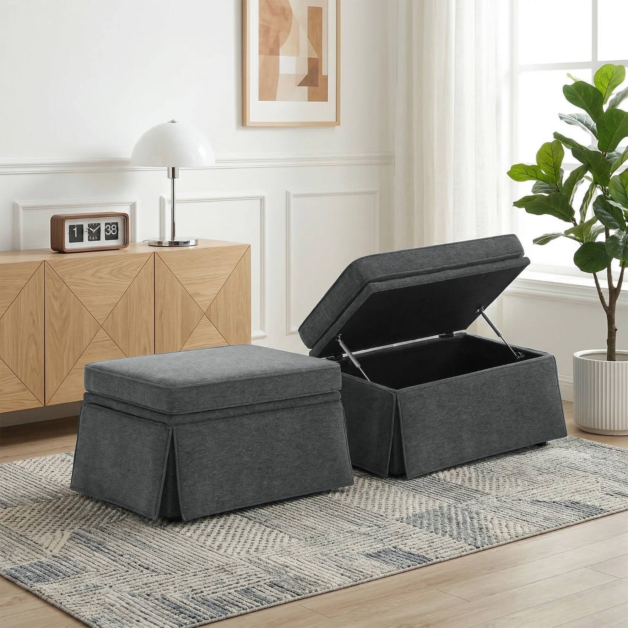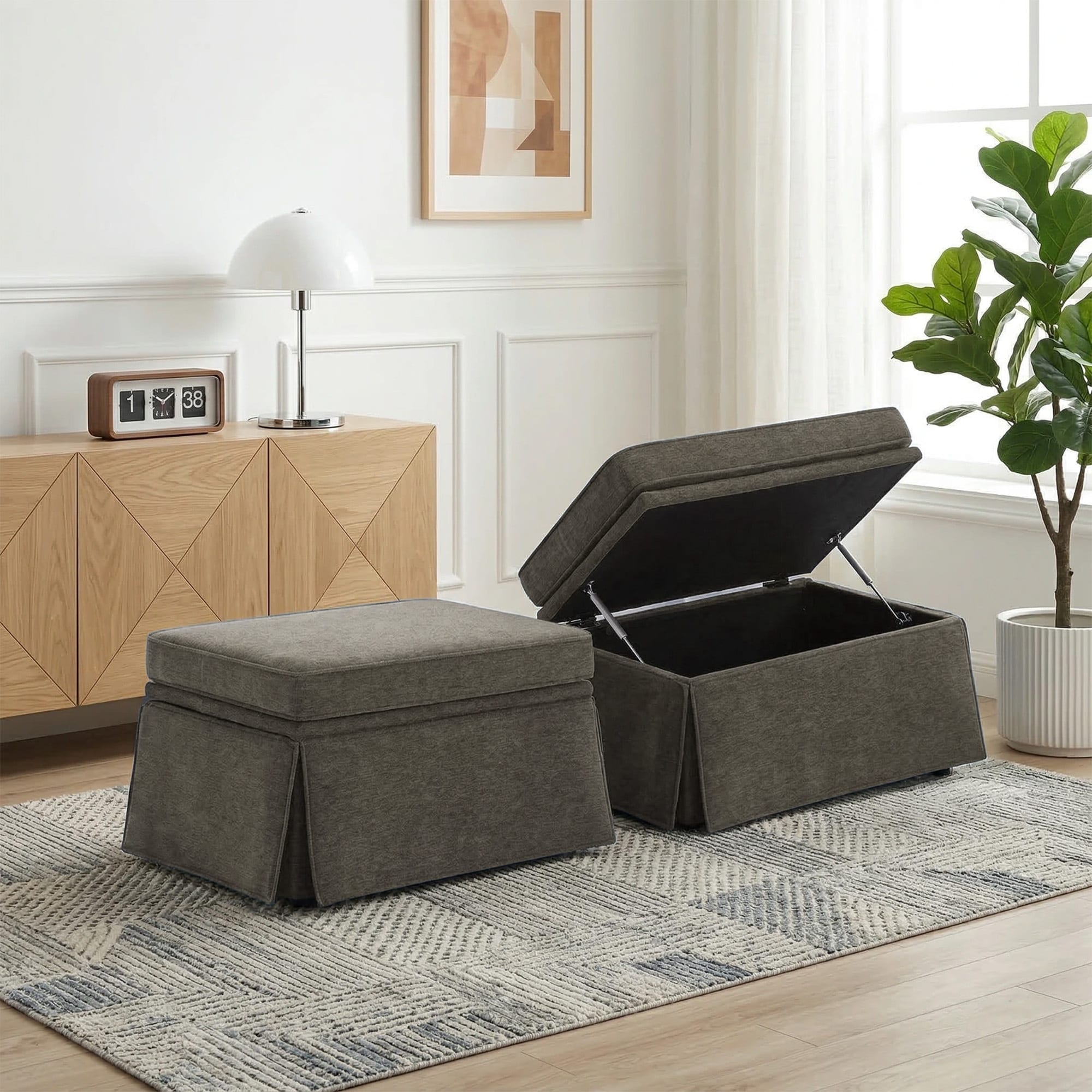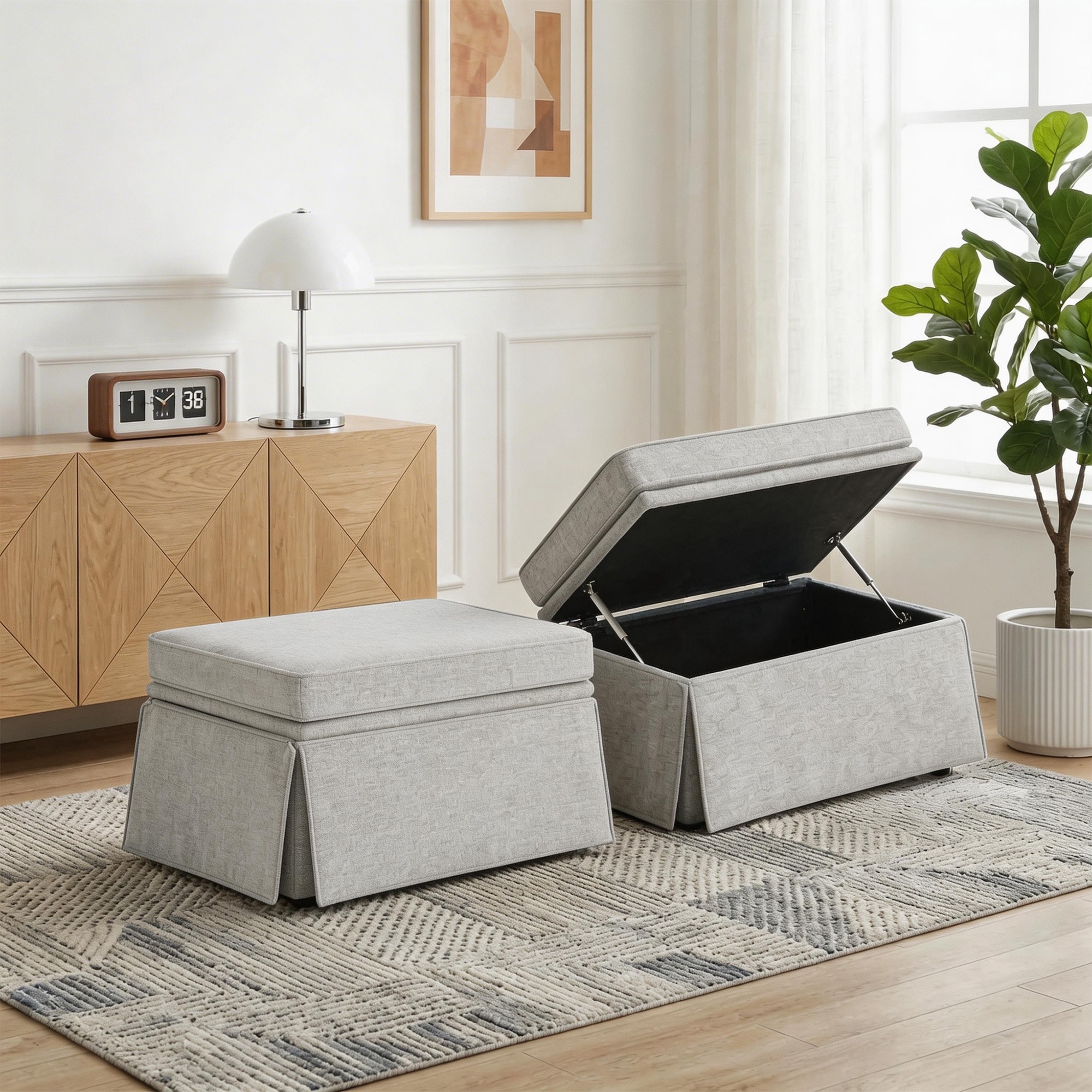2 Set Rectangle Chenille Upholstered Storage Ottoman