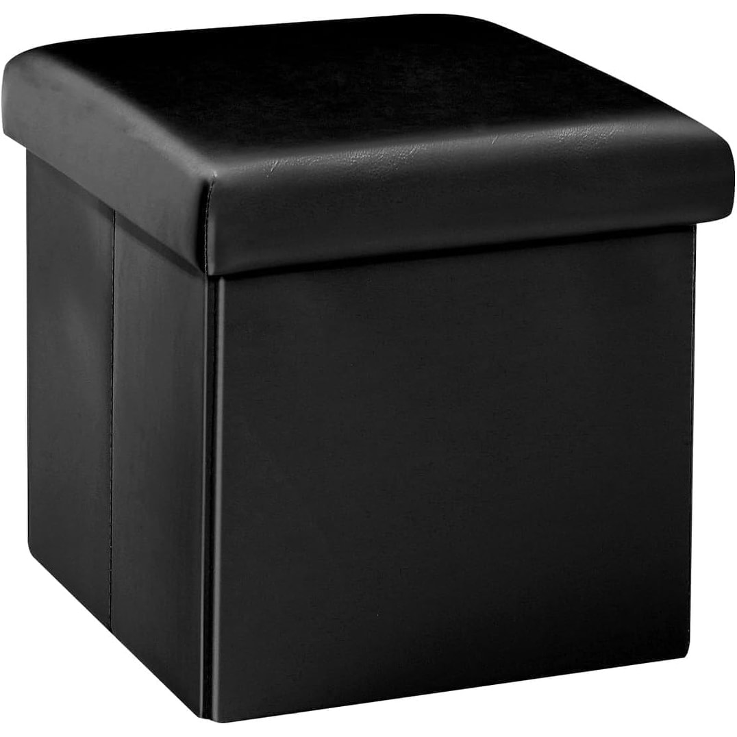 Folding Storage Ottoman Cube in Faux Leather, 11.8" Black
