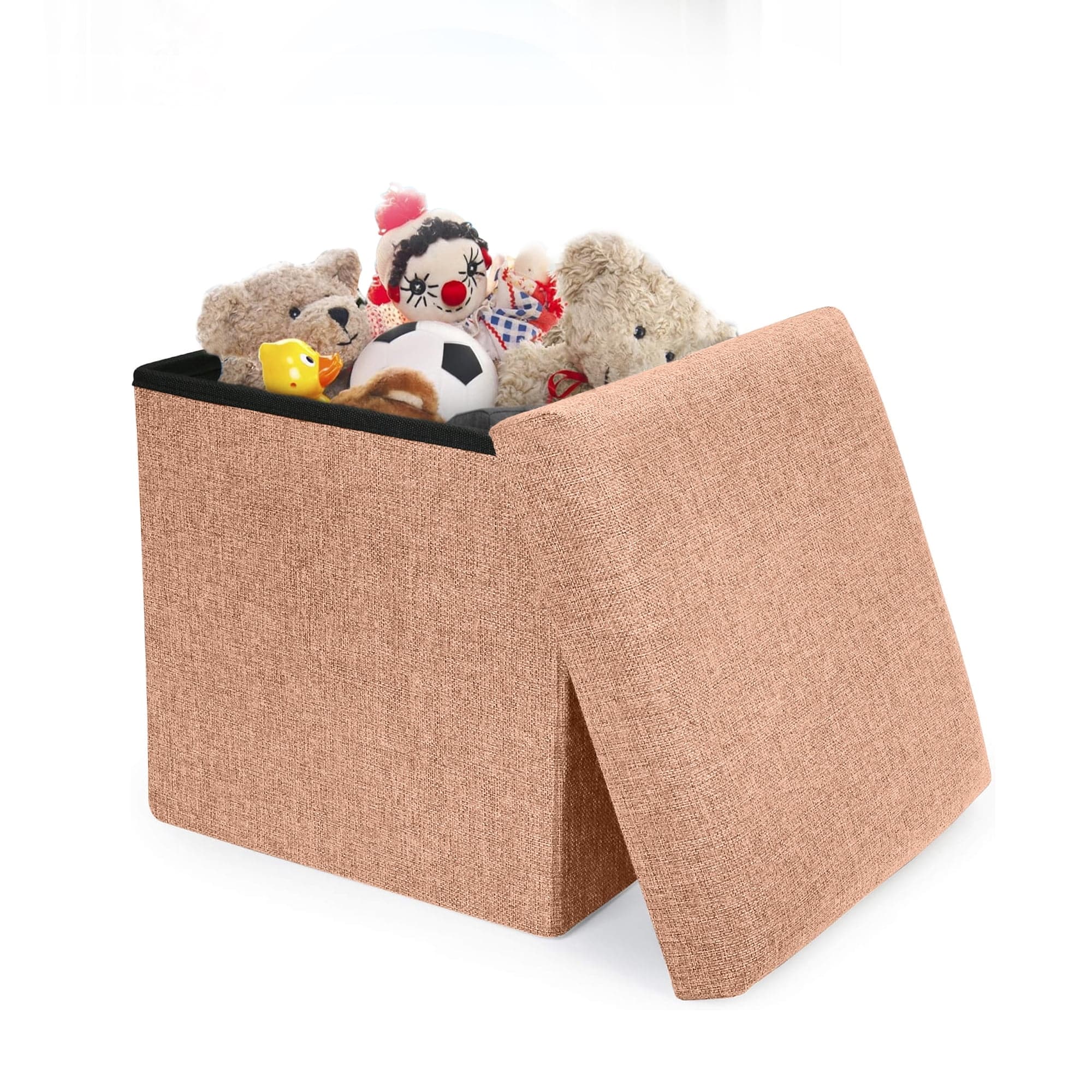 15-inch Foldable Storage Ottoman Bench with Removable Bins, Adjustable Height, Linen Fabric, White