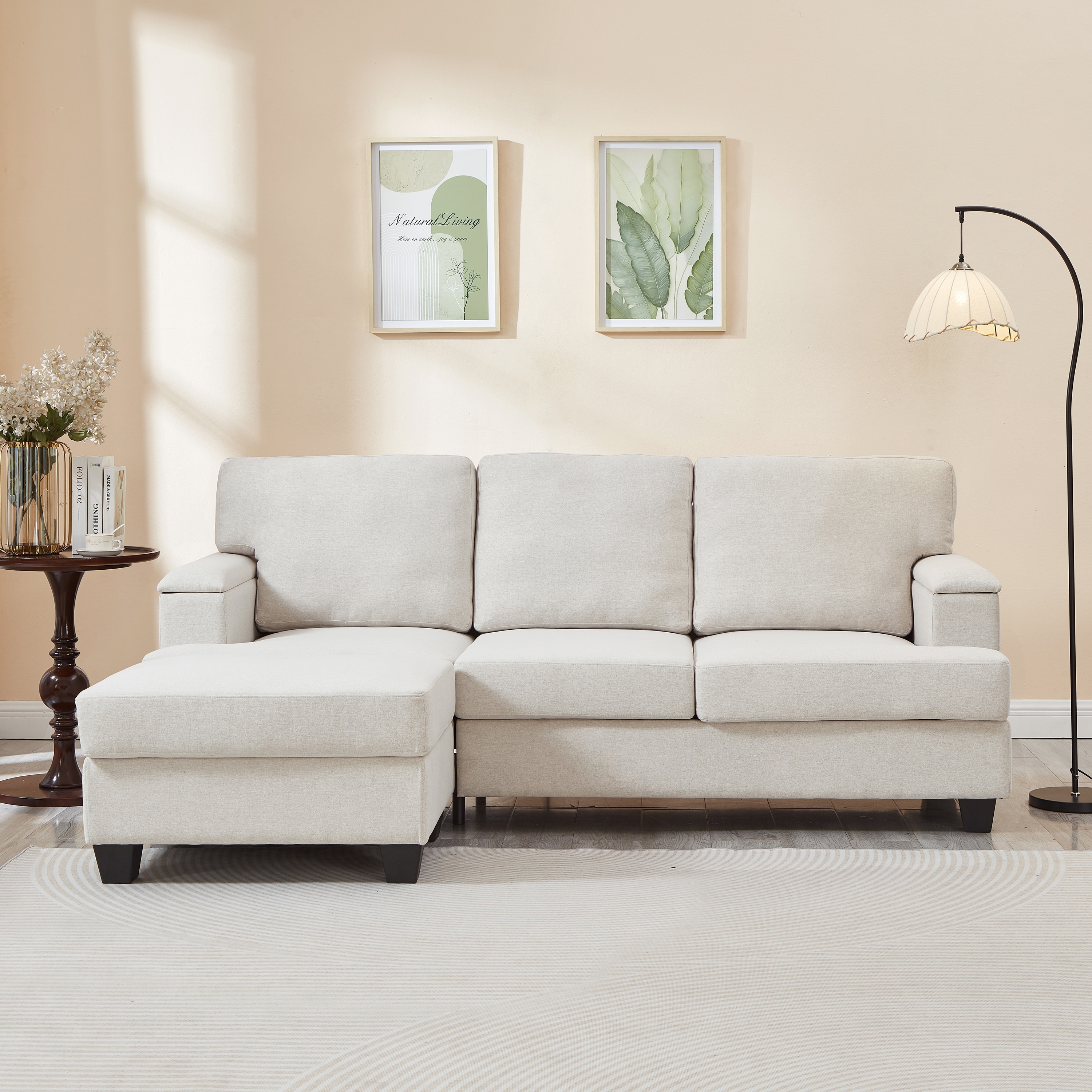 86'' L Shaped Couch with Armrest Organizer,3 Seats Sofas with Movable Ottoman,Comfy Sectional Sofa with Thick Cushion,Linen Sect