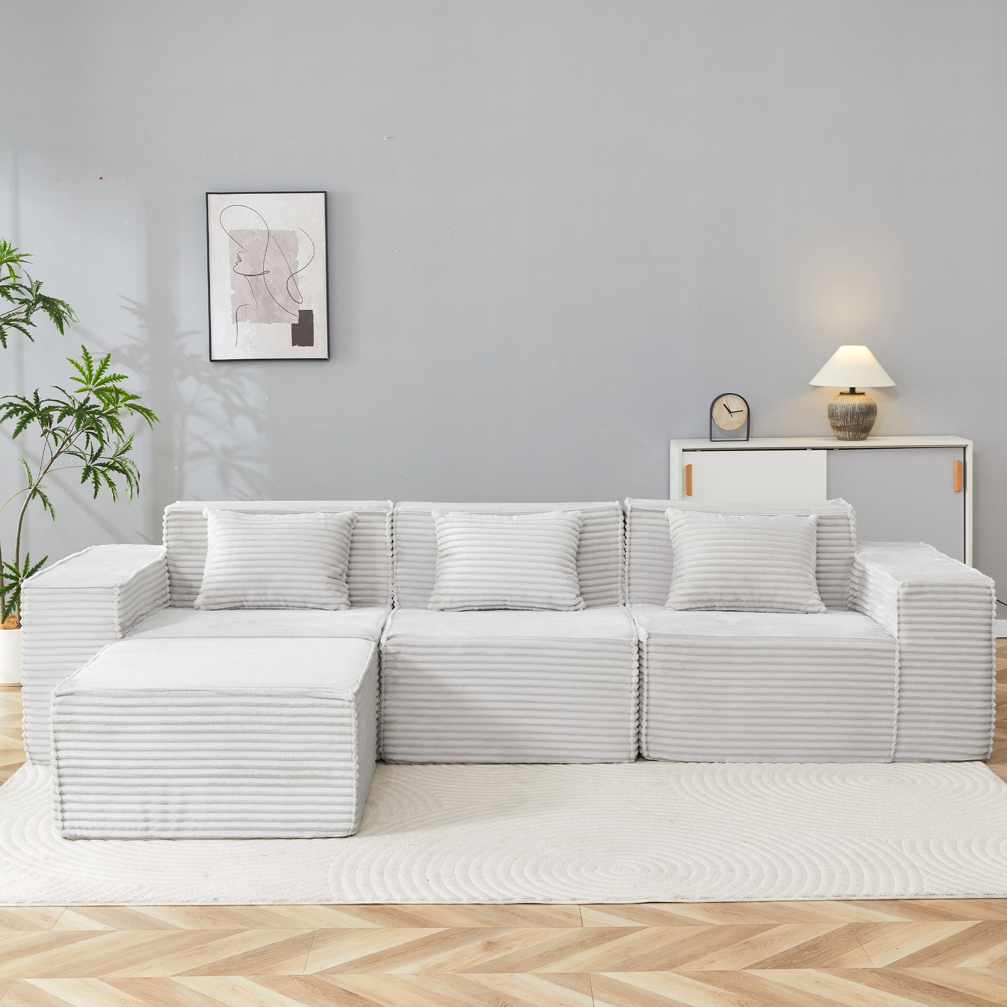 L-Shaped Modular Sectional Sofa, 3-Seater with Ottoman, Striped Corduroy Fabric, High-Density Foam For Home, Apartment, Office (