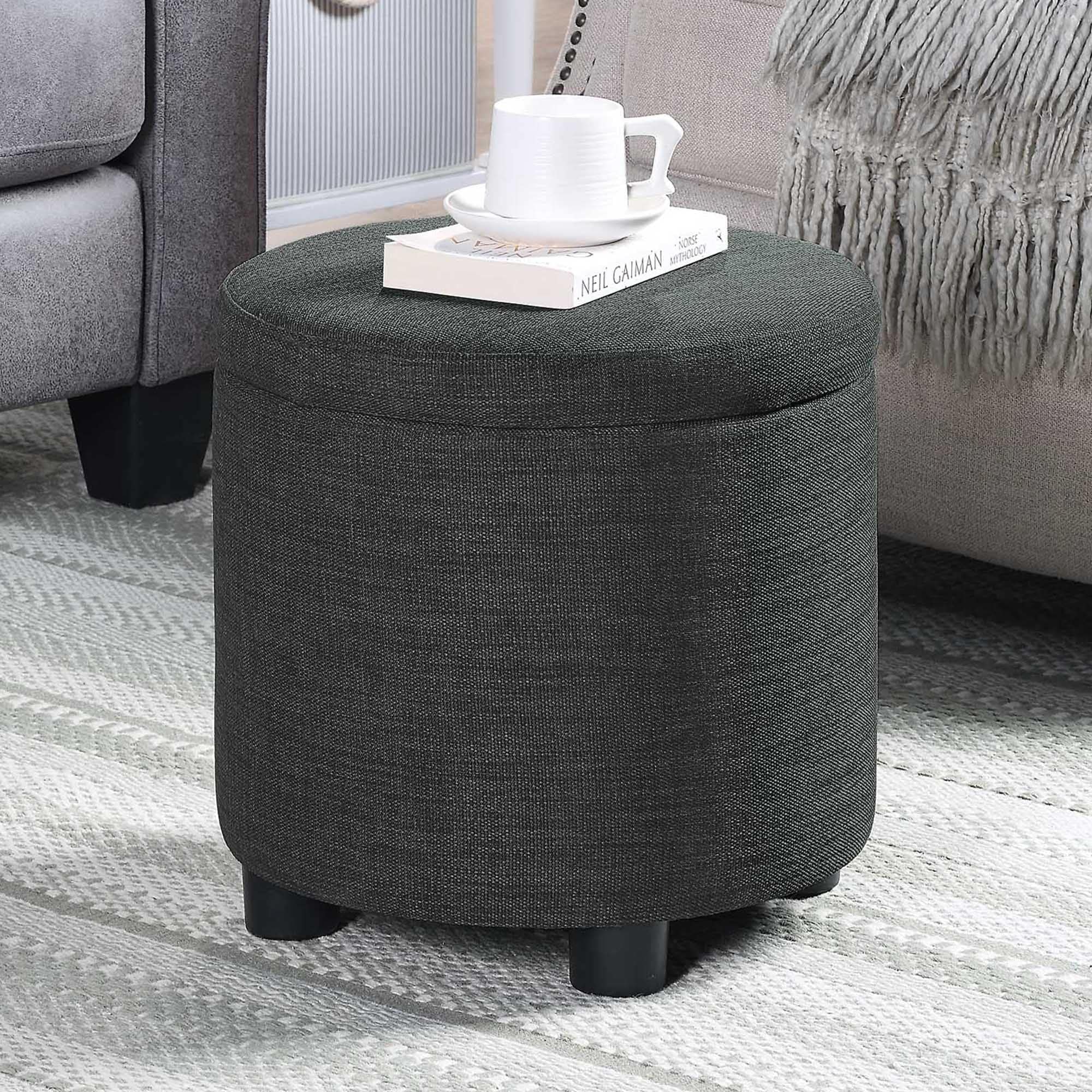 15.75-inch Round Storage Ottoman with Reversible Tray Lid, Charcoal Gray Fabric, 250lb Capacity