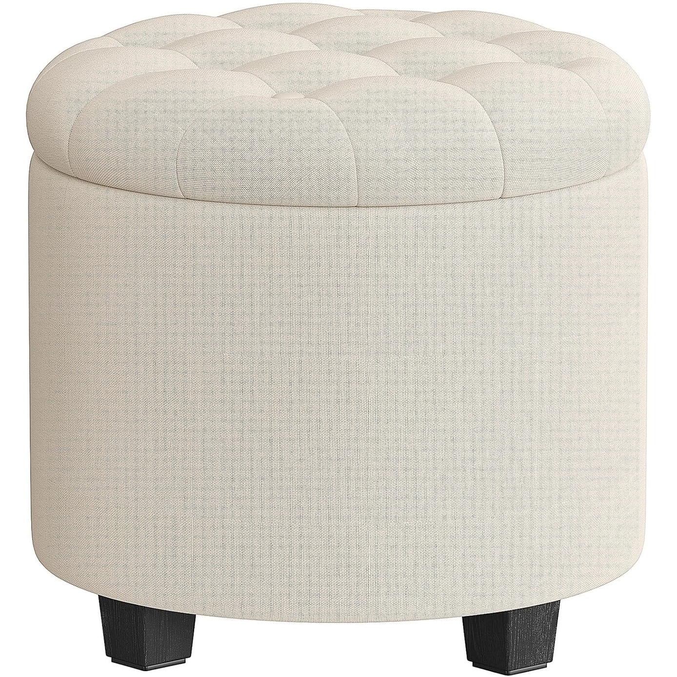 Round Storage Ottoman, 17.7" x 17.7" x 17.5", Footrest with Legs, Linen-Look Fabric, 330 lb Capacity, Light Beige