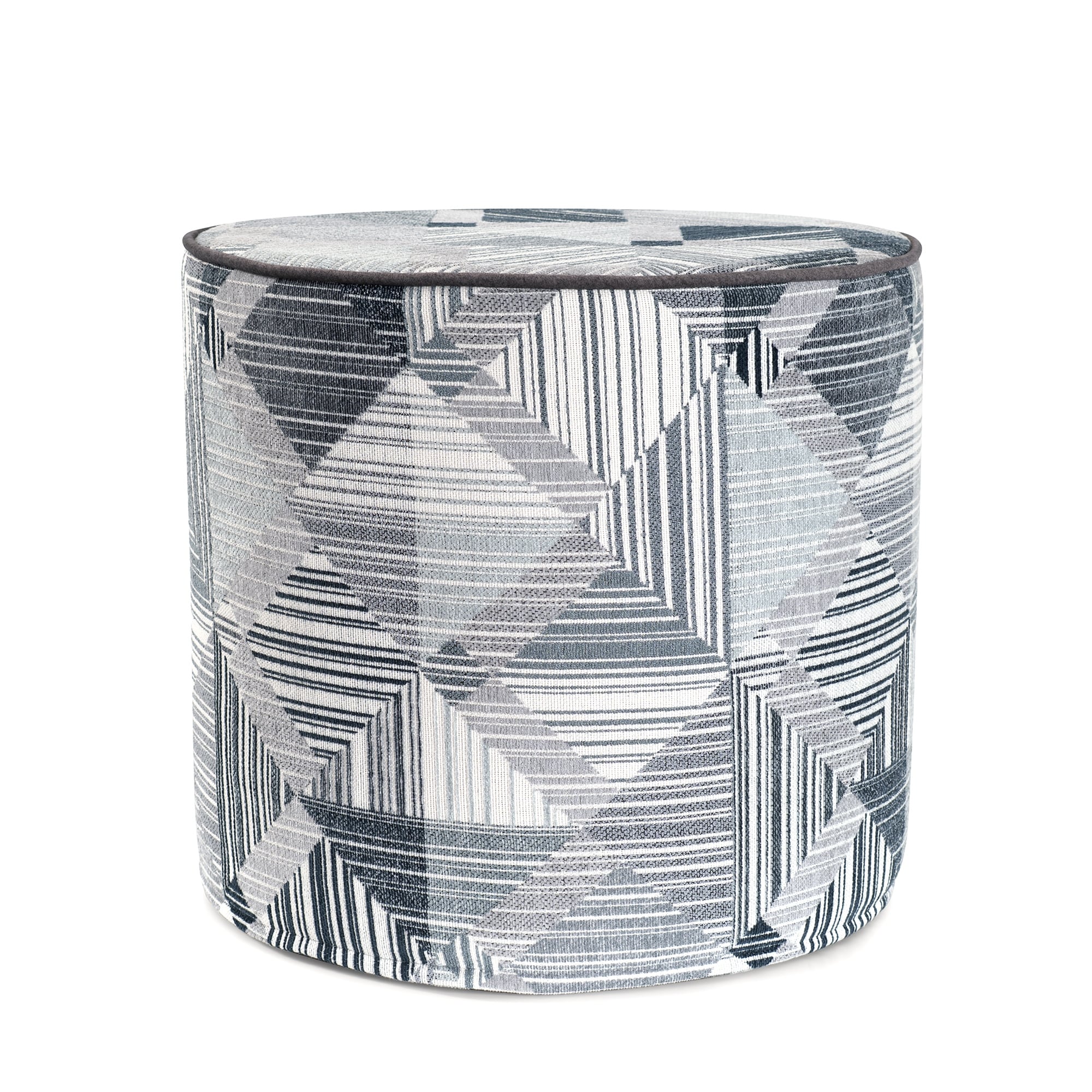 Add a touch of modern edge with this dynamic geometric jacquard fabric in cool tones of navy, steel, and silver. Intricate stitched patterns create striking dimension, while the angular motif brings a fresh, contemporary feel.