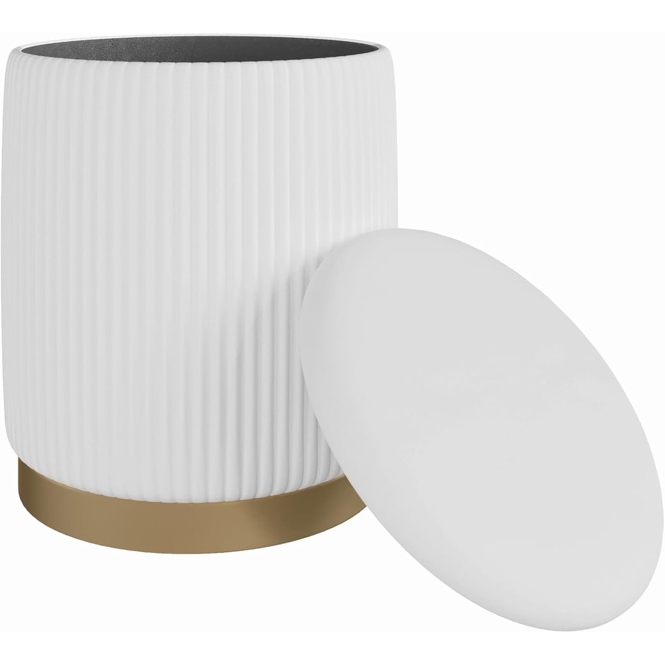 White Velvet Vanity Ottoman with Hidden Storage, Makeup Chair, Elegant Foot Rest Stool with Gold Base (Pure White)