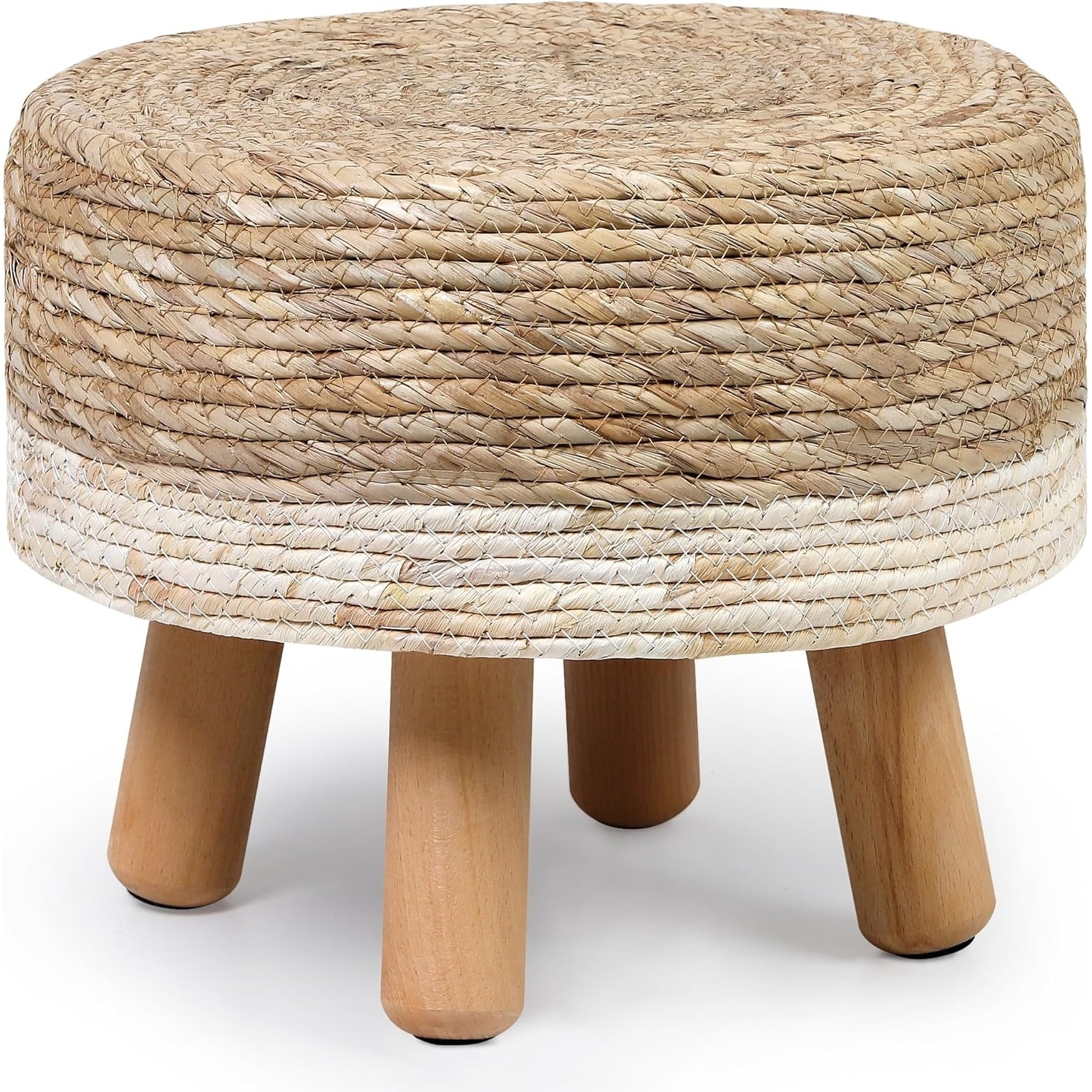 Round Handwoven Footrest, Seagrass Pouf with Pine Legs for Living Room, Bedroom, Couch, Desk - Soft Padded Step Stool