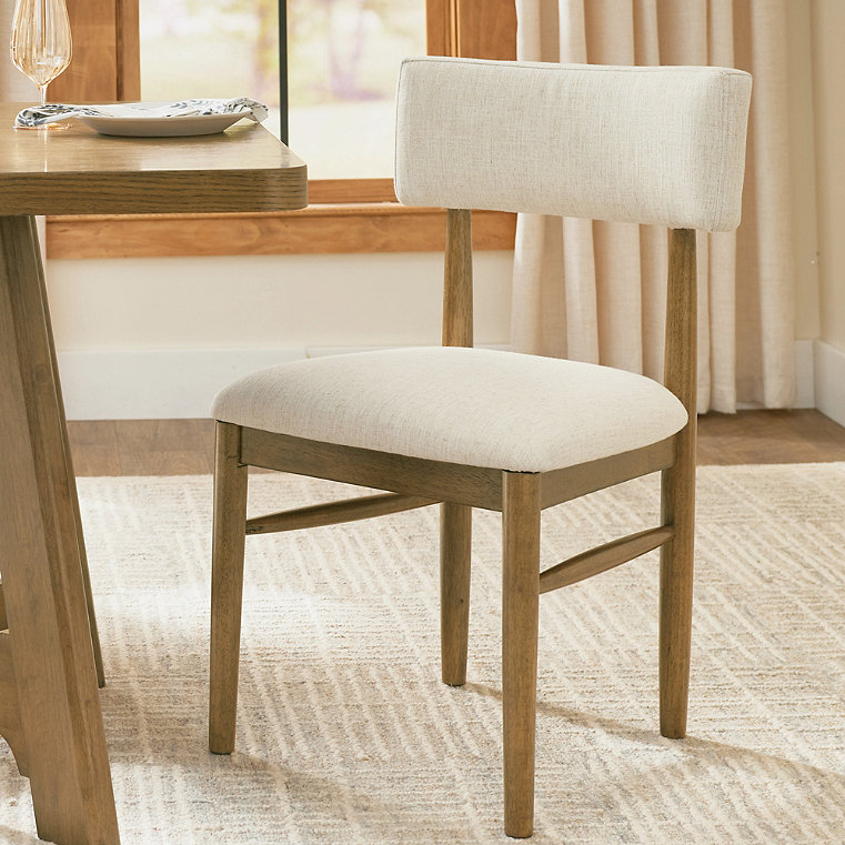Upholstered wood side chair . A smart buy: sturdy and comfortable with a timeless style . Well-crafted charm: sleek, structured frame and tapered legs . Mid-century modern design effortlessly blends with existing decor . Curved back and firm...