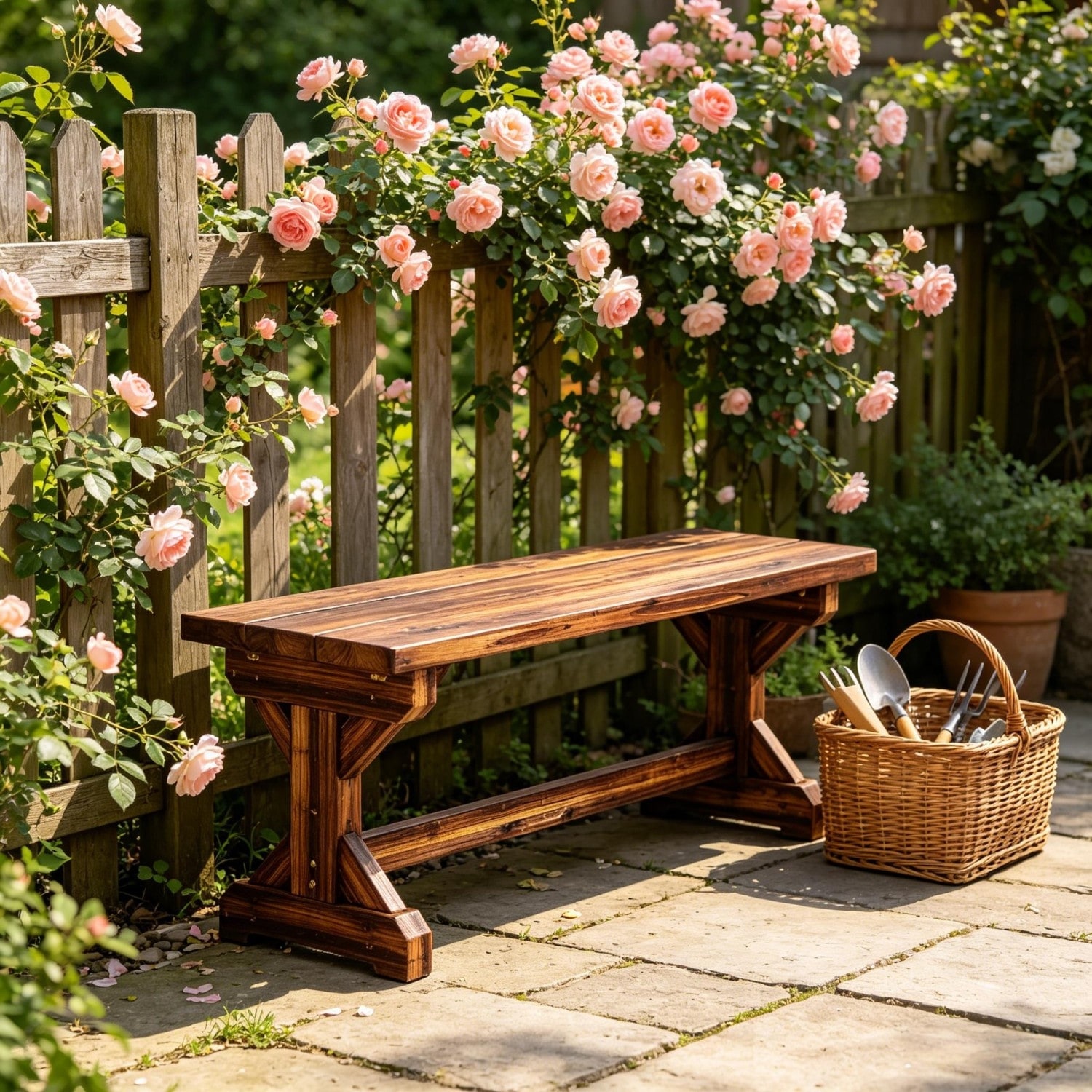Product Features Bench & Outdoor Decor: Our elegant 2-person wooden wagon bench brings needed seating to a porch and does so in style.