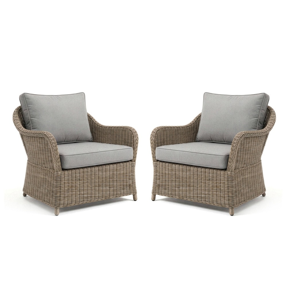 Enhance your patio seating with this outdoor acacia wood club chair set featuring natural teak-tone frames and textured wicker backrests. Designed for relaxed outdoor living, these durable chairs combine rustic charm with modern simplicity.