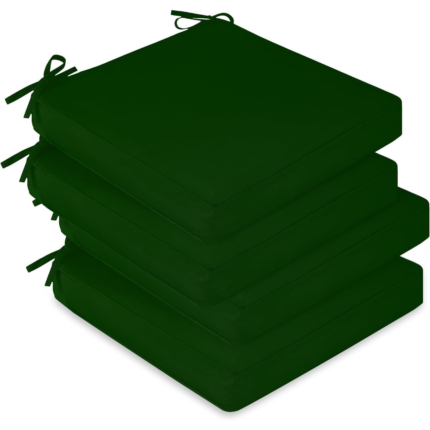 Waterproof Outdoor Chair Cushions Set of 4, 19x19x3 Inch, Non-Slip Ties & Handle, Removable Cover, Forest Green