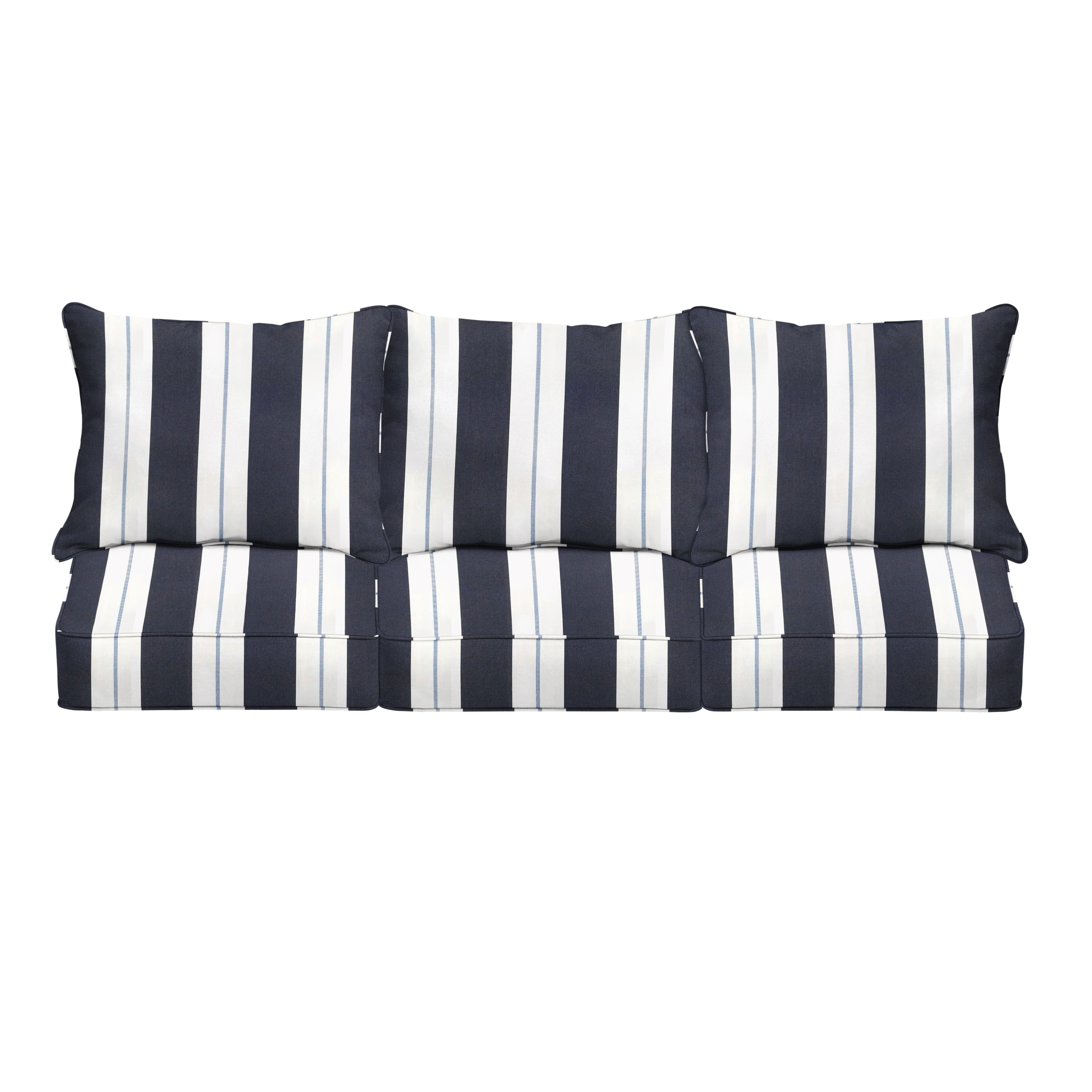With three seat cushions and three back cushions, this sofa set is ideal for filling out any indoor or outdoor seating area.